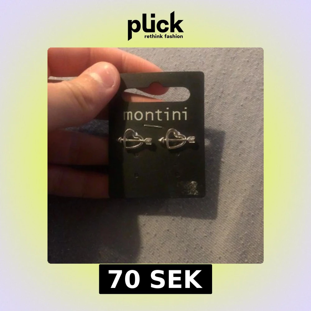 Säljer ett par söta örhängen från Montini i silverfärg, formade som hjärtan med en pil genom. Perfekta för att ge din stil en romantisk touch. Kommer på originalkortet. + frakt