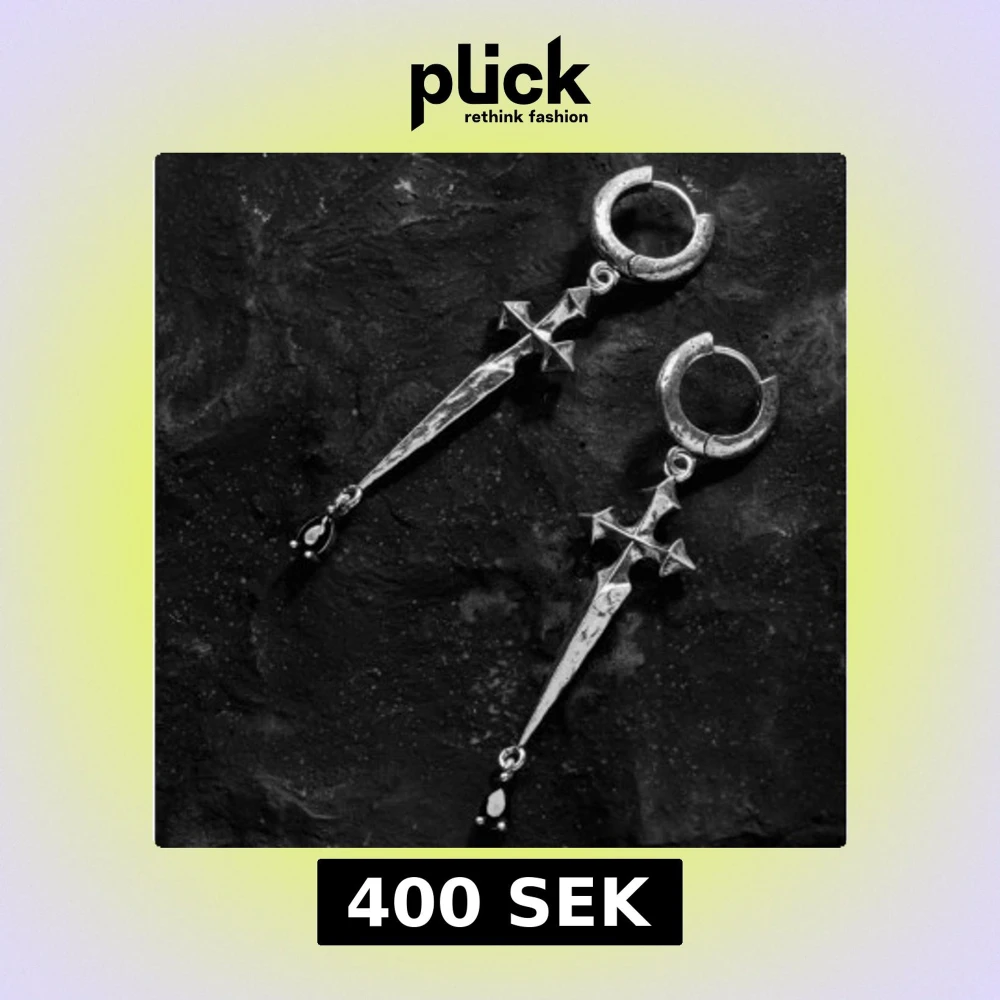 Säljer ett örhänge i silver från Ask & Embla. (jag tyvärr tappade den andra när jag var på resa, och pågrund av deras regler kan man bara köpa de i par så säljer den 🩶) De har en unik design med långa, spetsiga kors och små svarta kristaller längst ner. Perfekta för dig som gillar statement-smycken :)