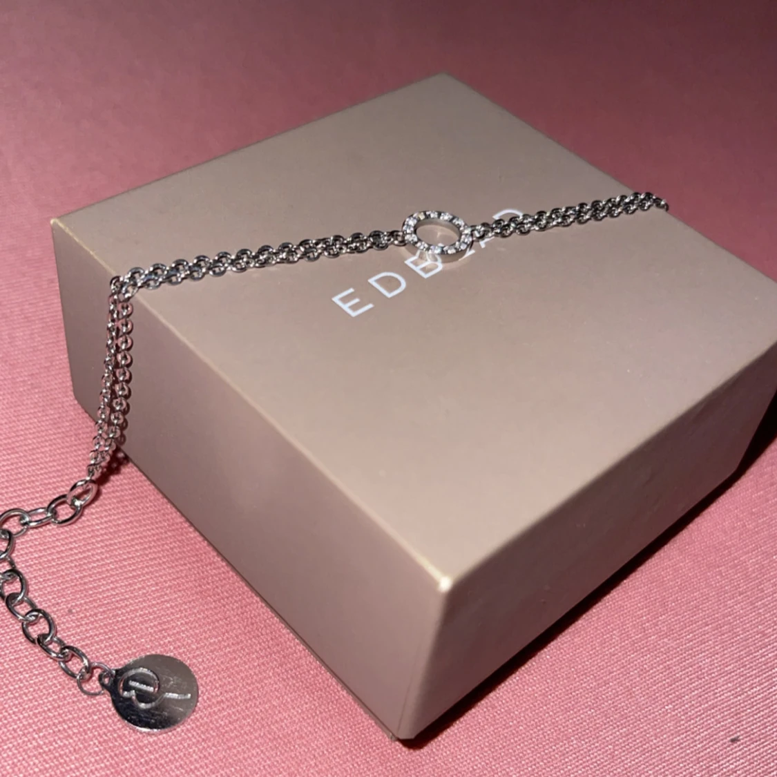Elegant armband i silverfärg från Edblad med en glittrig cirkeldetalj i mitten. Kedjan har en liten bricka med Edblad-logga vid låset. Sparsamt använd, nyskick! (OBS! Box följer inte med och ingen retur) ❣️
