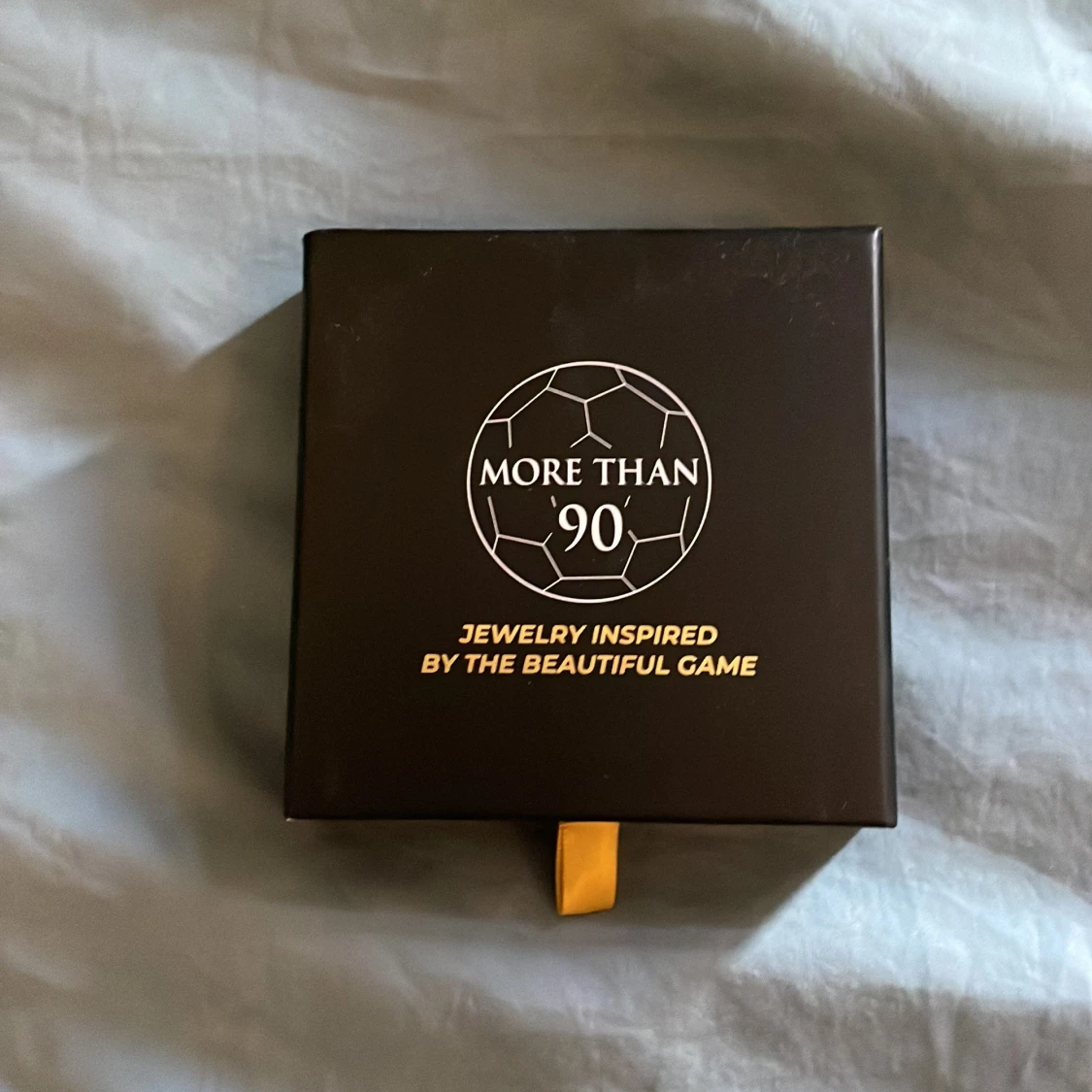 Snyggt silverfärgat armband från More Than 90 med en klassisk kedjedesign och en fotbollsplan på. Perfekt för att ge en stilren touch till din outfit. Levereras i en elegant svart ask med gulddetaljer. Nypris: 450 kr