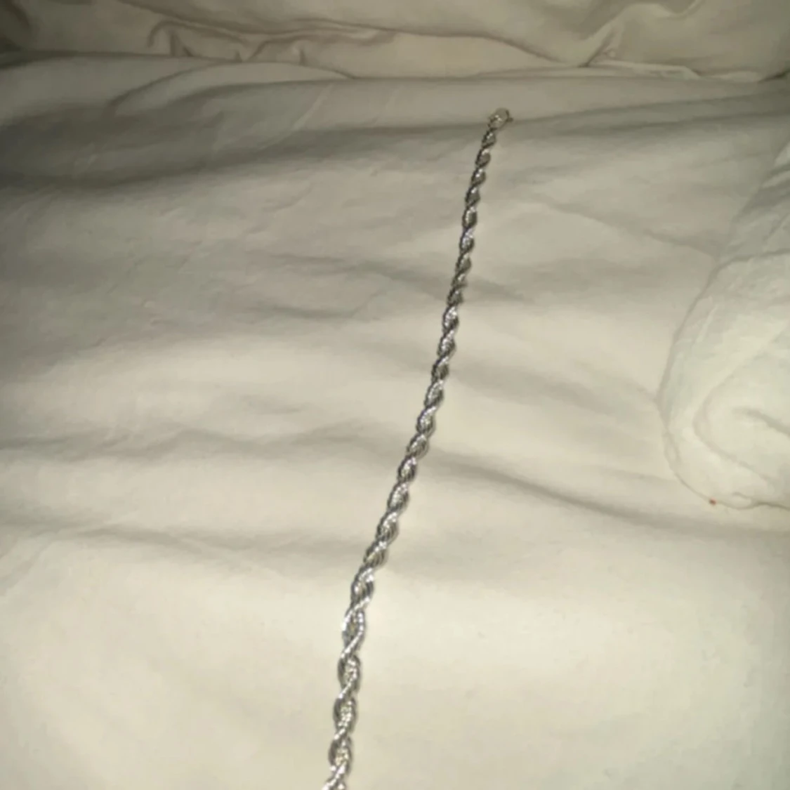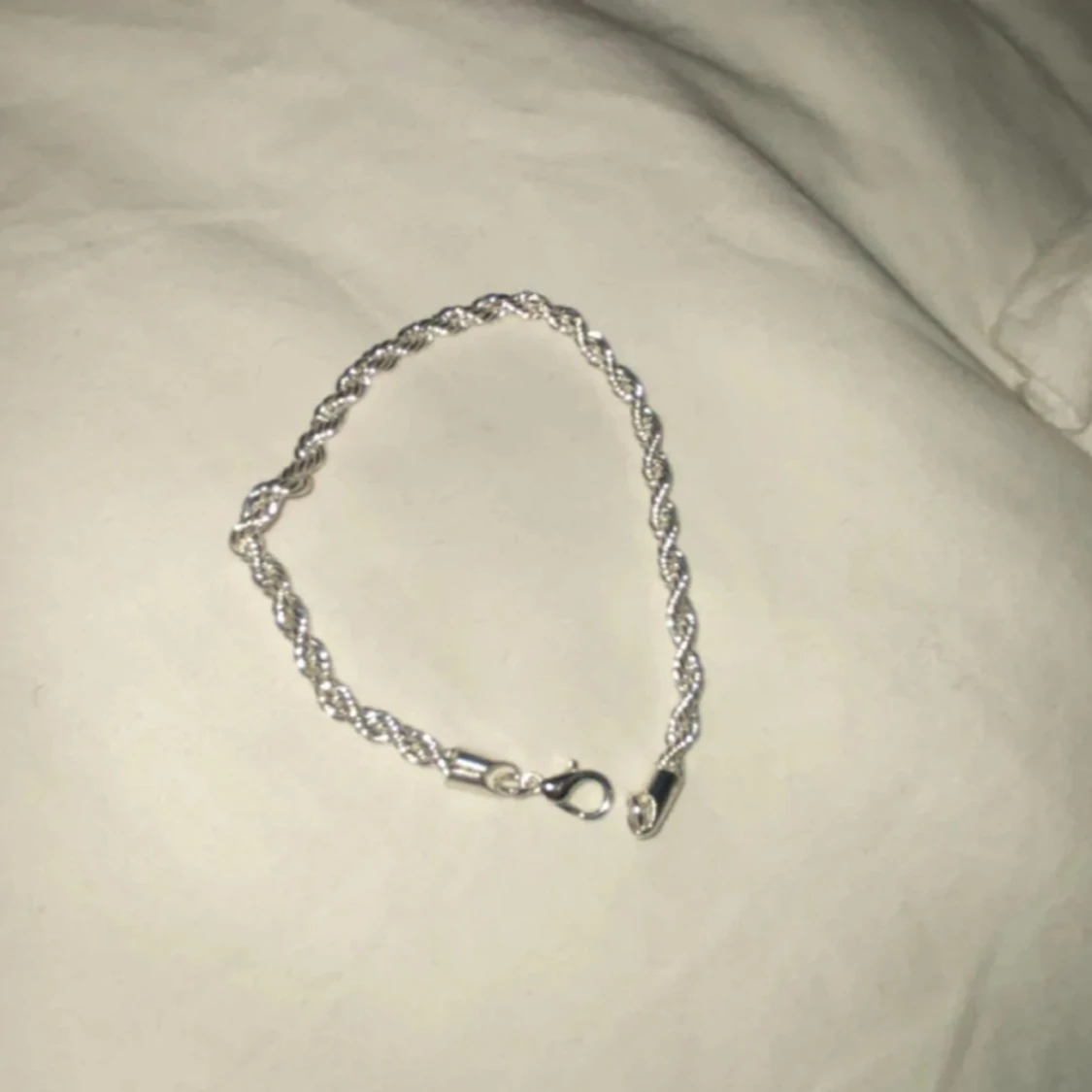 Snyggt silverfärgat armband med en elegant tvinnad design. Perfekt för att ge en stilren touch till din outfit. Armbandet har en praktisk karbinhake för enkel användning.