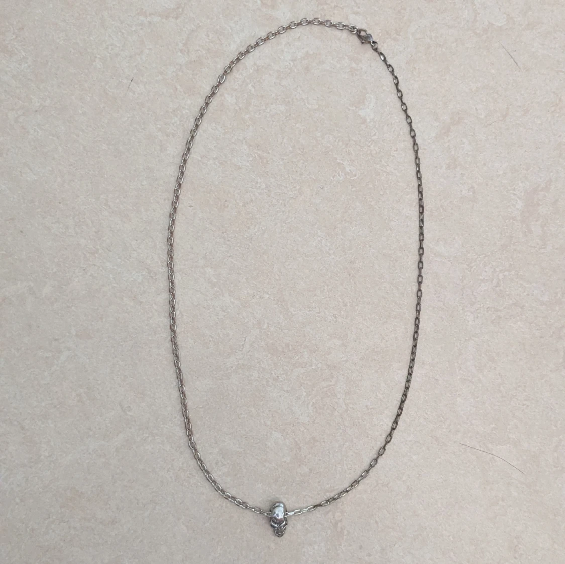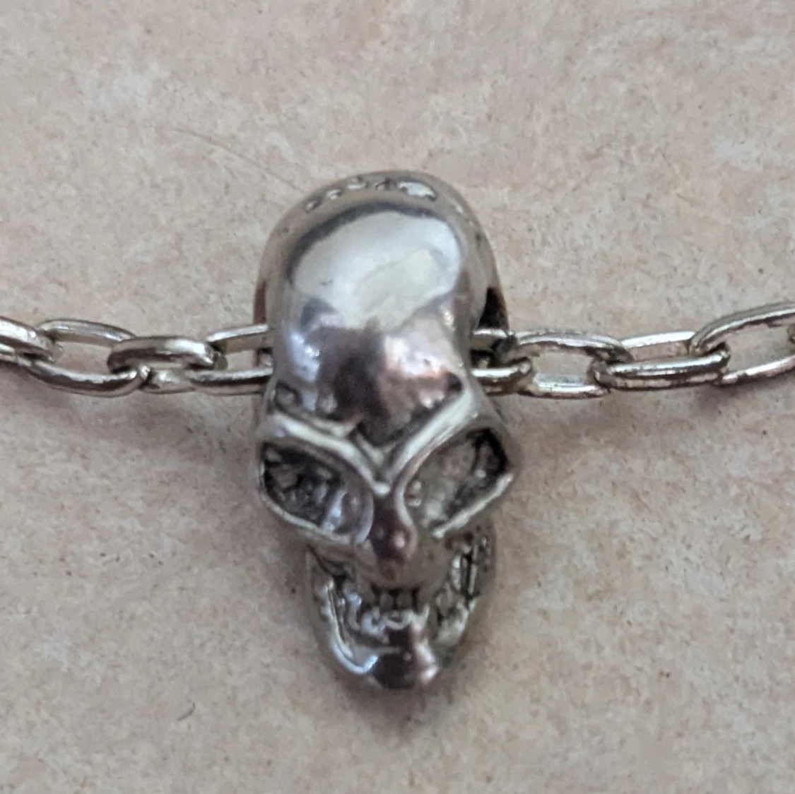 Kedjehalsband i silverfärg med en cool dödskalleberlock. Berlocken har detaljerade drag och är tillverkad i metall.. Perfekt accessoar för dig som gillar edgy och unika smycken.