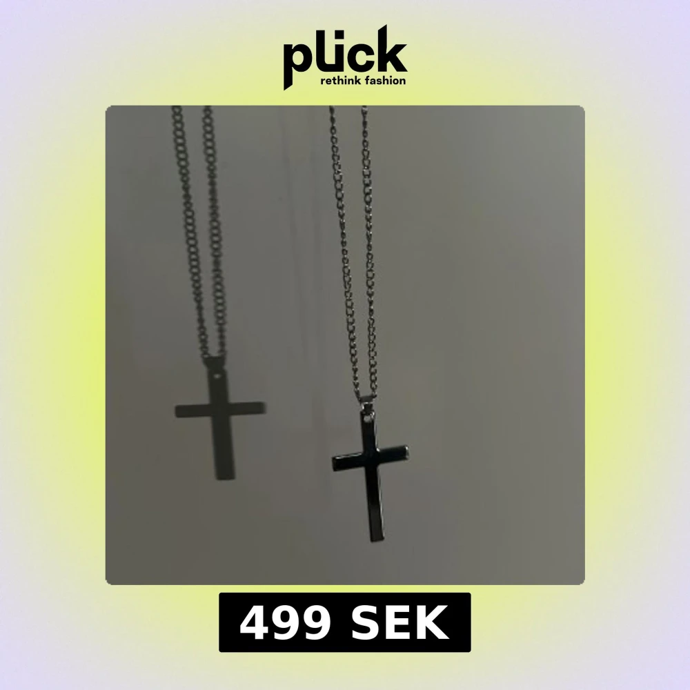 Stilrent halsband med ett kors i silverfärg. Kedjan är tunn och korshänget har en enkel, modern design. Perfekt för dig som gillar minimalistiska smycken.