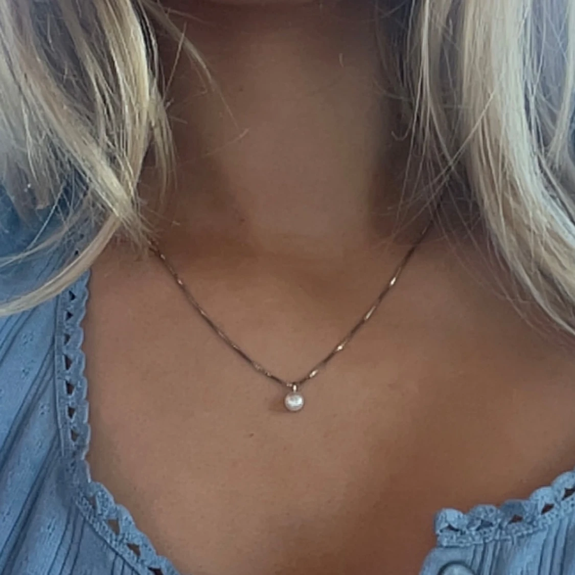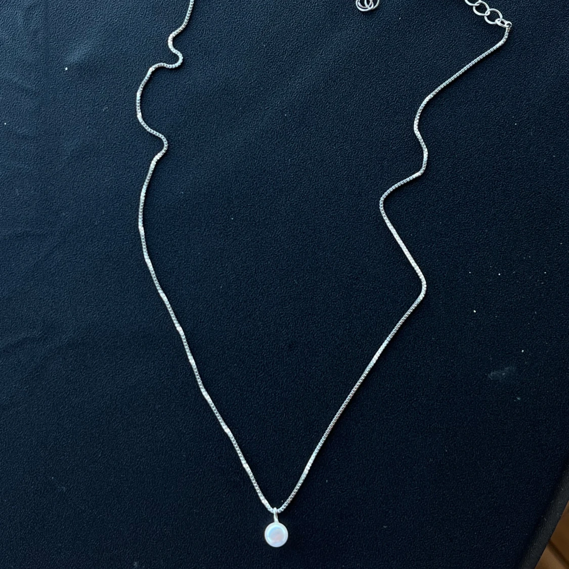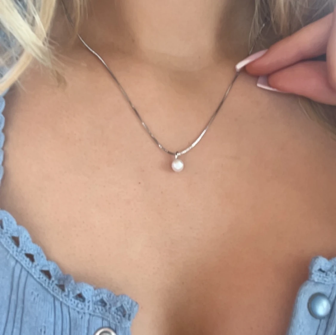 Ett stilrent halsband i silver med ett litet runt pärlhänge som ger en fräsch och elegant vibe🤗kom privat för frågor🩷🫧
