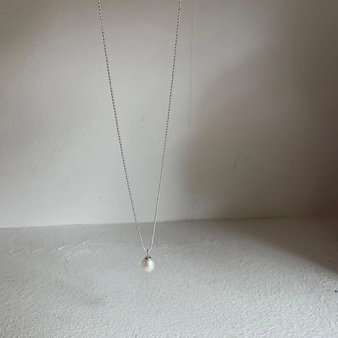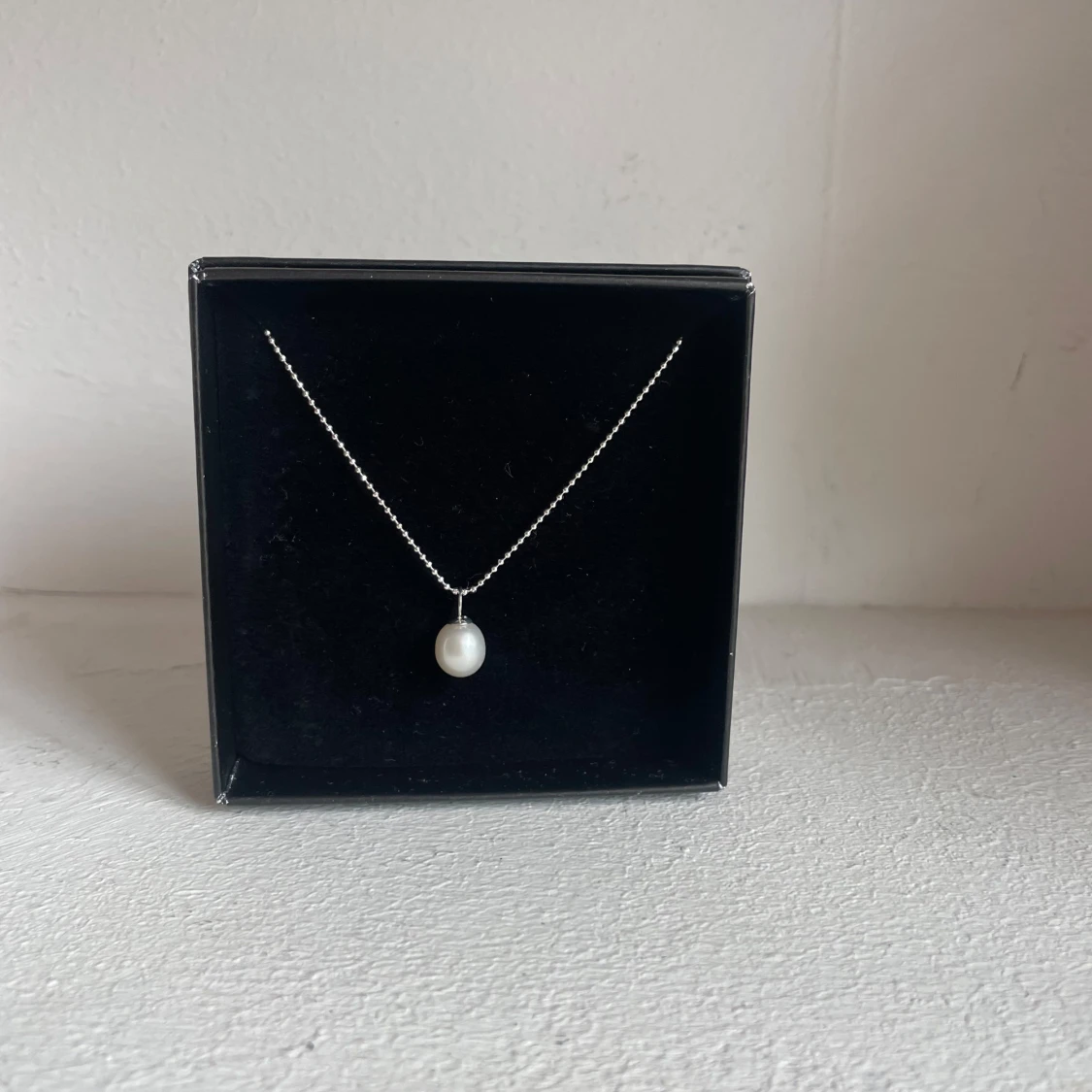 Snyggt halsband i äkta 925 silver från Ccc med en rund vit pärla som hänge. Kedjan är tunn och stilren, perfekt för dig som gillar minimalistiska smycken. Kommer i svart ask. Enkelt att matcha med din outfit och ger en classy vibe.