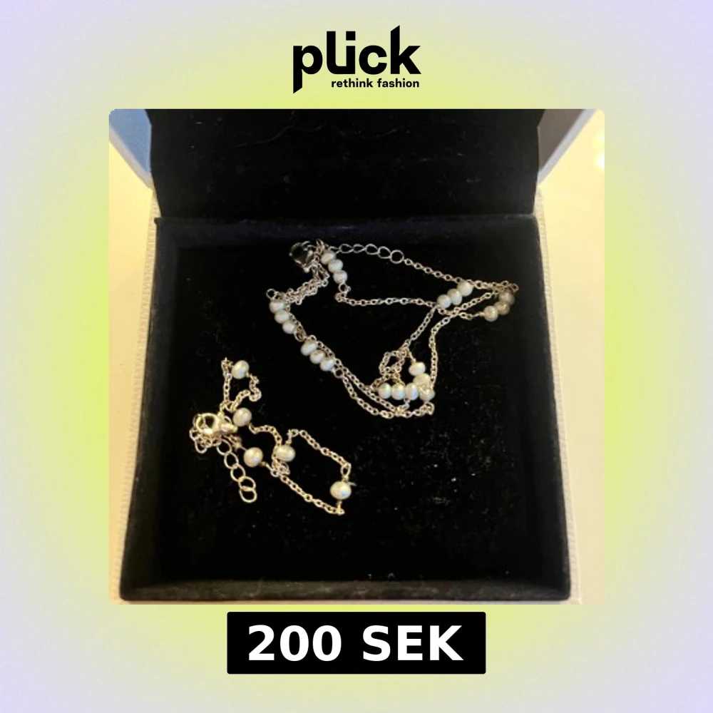 Säljer ett tunt silverhalsband och matchande armband med små vita pärlor. Köpt i Danmark, minns tyvärr inte vad märket heter. Äkta silver.