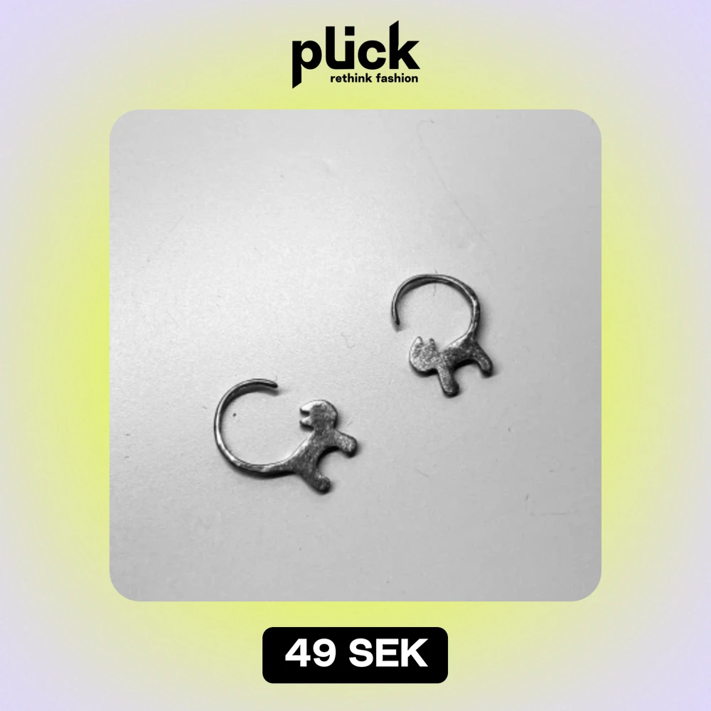 Örhängen av sterlingsilver formade som katter. Huggies där svansen på katten träs igenom örat. Följer med pluppar till baksidan av örhängena. Pris kan självklart diskuteras!