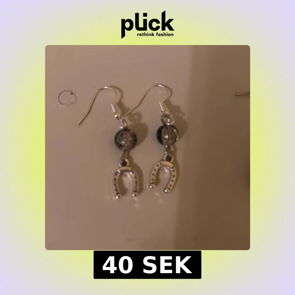Silverörhängen med blå oceanfärgad pärla och hästsko. Lägg märke till att de inte är nickelfria och att jag gjort de själv.