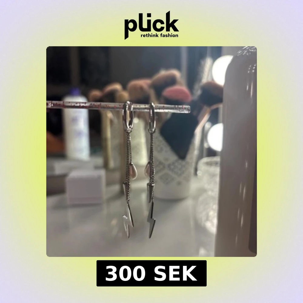 Snygga örhängen i silverfärg med hängande kedjor, blixtformad detalj och en liten pärla. Perfekta för dig som gillar att sticka ut med coola accessoarer. Inte mycket andvänd och inga tecken på andvändning. Dom är från Edblad så dom är i bra kvalité. Man kan även blocka bort de hände grejar om man bara vill ha en ring eller tex örhänget fast utan blixten. Man kan alltså göra många olika looks med dessa stiliga örhängen ❤️