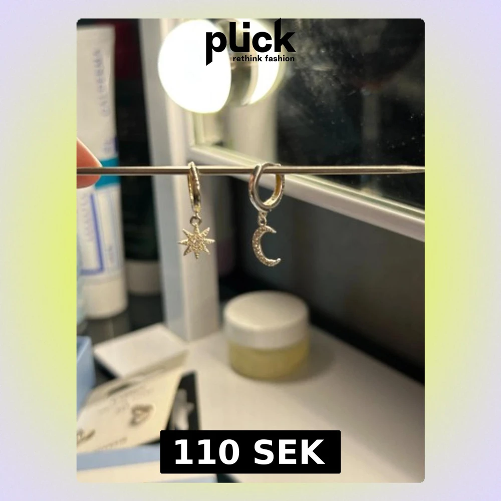 Silvriga örhängen i med en halvmåne och en sol på. De är använda men rengjorda och i fint skick! Från Glitter Nypris- 299 kr