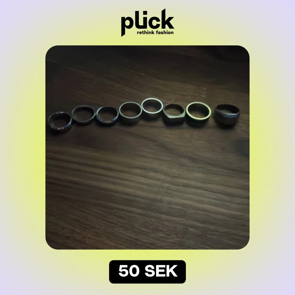 8 olika fina silverringar som passar ringfinger och lillfinger på en ganska stor hand