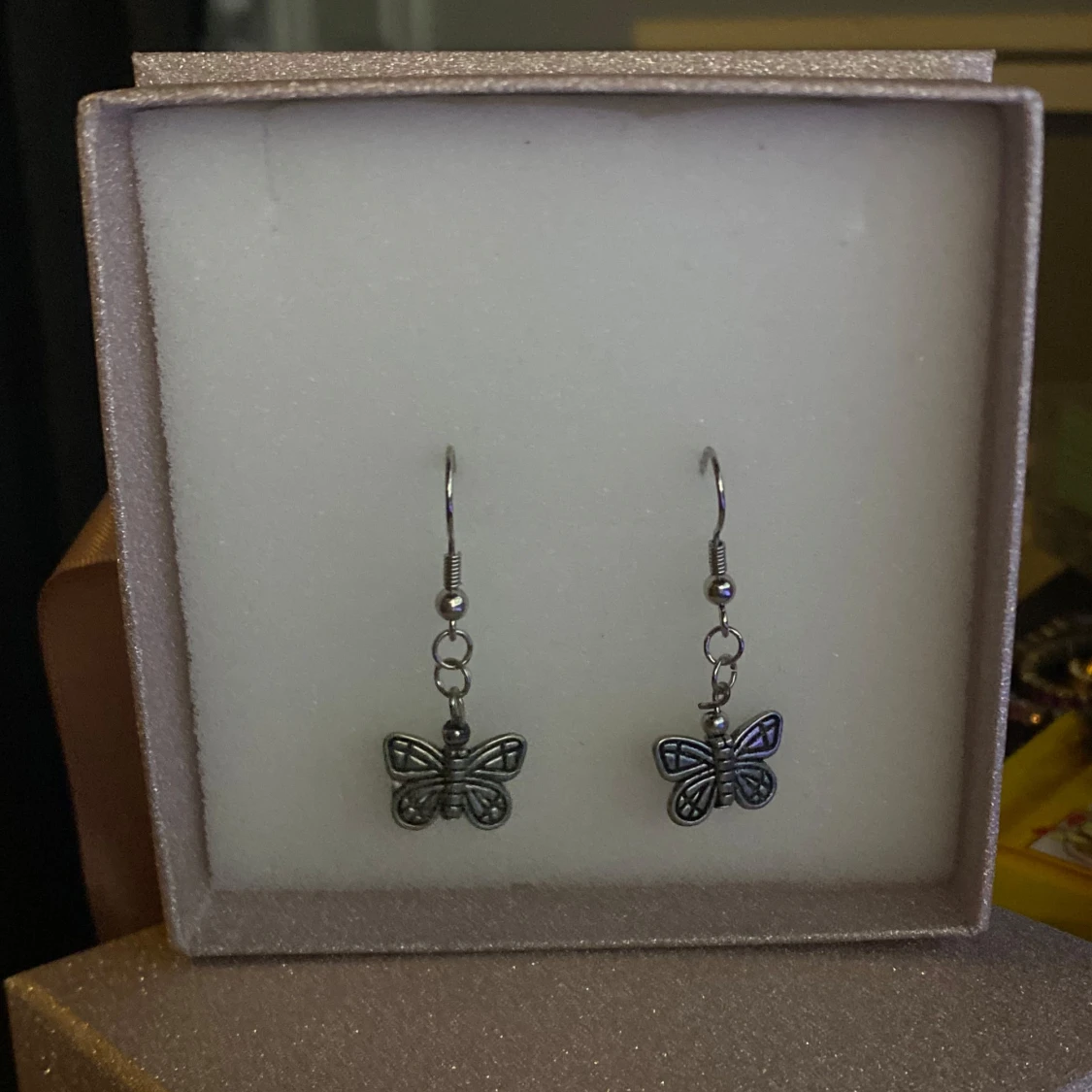 Silvriga örhängen med fjärilar, använda ett par gånger. Skriv vid frågor❤️