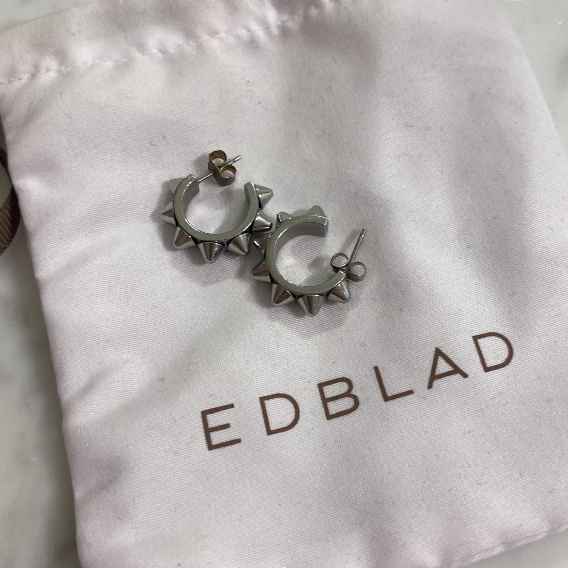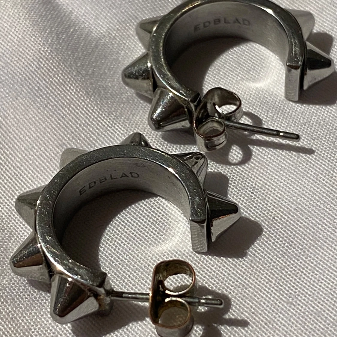 Snygga och trendiga silvriga örhängen från Edblad med coola nitar runt om. Knappt använda och perfekta för att ge din outfit en touch. Kommer i en fin förvaringspåse. Nypris 400❣️