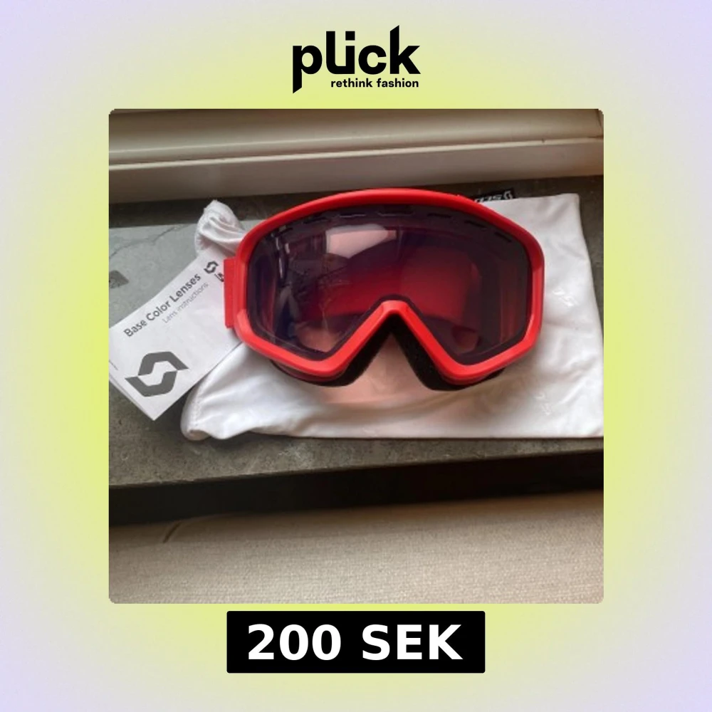 Helt oanvända röda skidglasögon från Scott med justerbart band och bekväm passform. Har etikett på. Linsen är designad för att ge bra sikt i olika ljusförhållanden. Perfekta för vintersport.