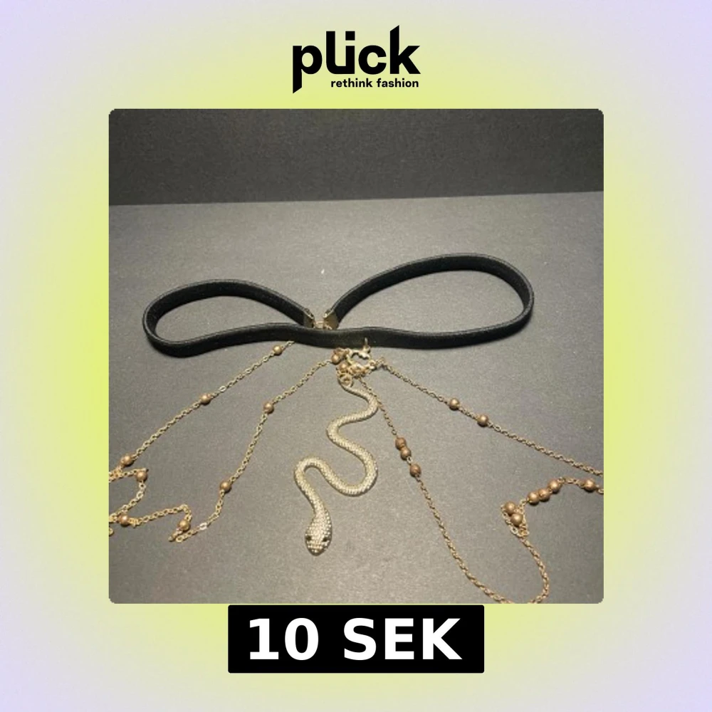 Cool svart smycke för låret med en hängande guldorm i metall och tunna guldfärgade kedjor med små pärlor. Ormen har detaljerad struktur och ger ett edgy och unikt intryck. Perfekt för dig som vill sticka ut med ditt smycke.