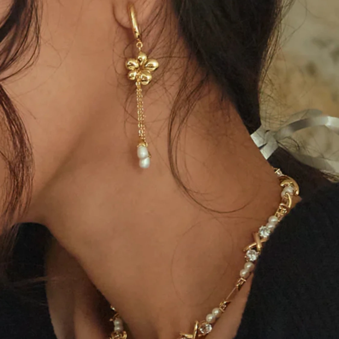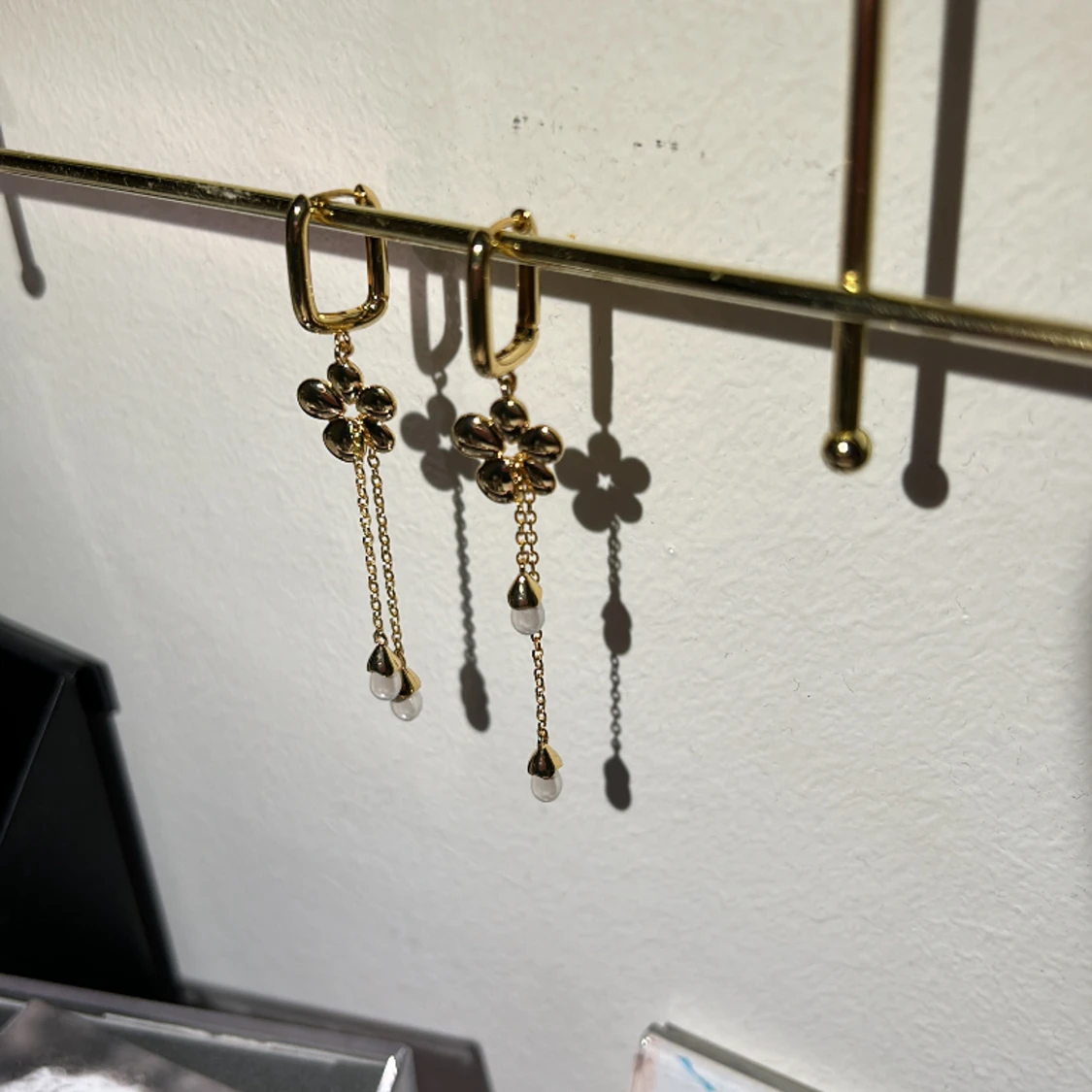 Såå snygga guldiga örhängen med blommor🌸 Råkade beställa två par så de är helt oanvända!! Man kan även justera längden på dropparna🥰