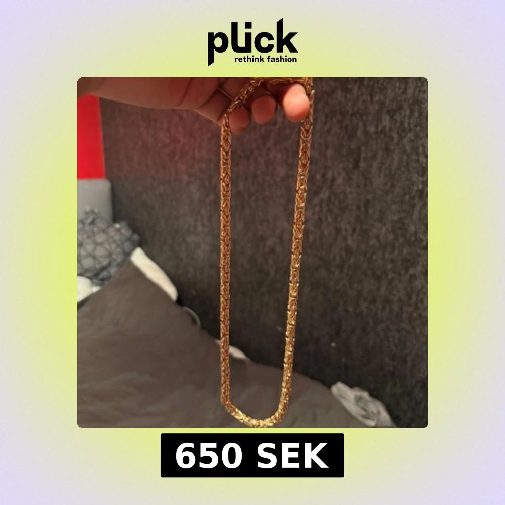 Säljer ett snyggt halsband som är pläterad i guld med flätad kedja. Halsbandet har en unik och detaljerad design som verkligen sticker ut. Runt 55cm lång
