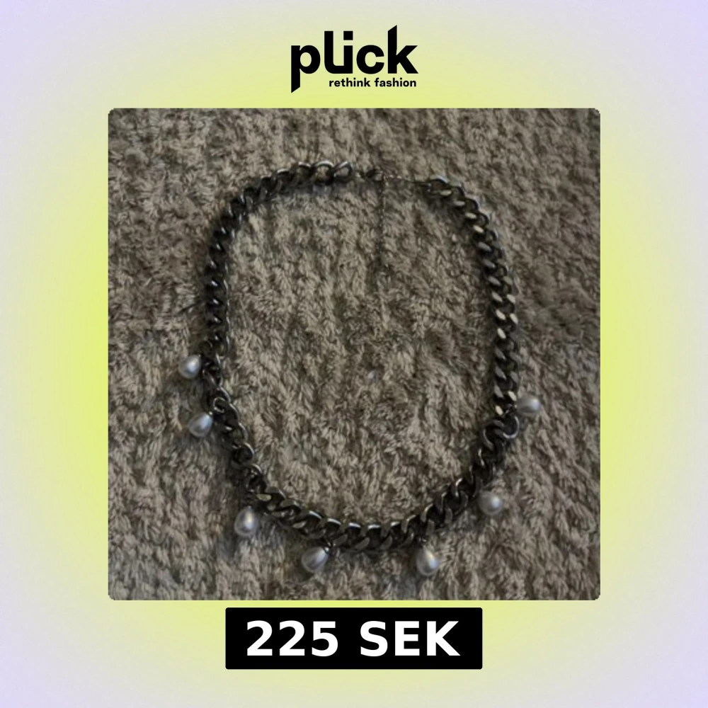 Stilrent halsband med grov silverfärgad kedja och sju droppformade vita pärlor som hänger längs länkarna. Perfekt statement piece för att lyfta vilken outfit som helst.