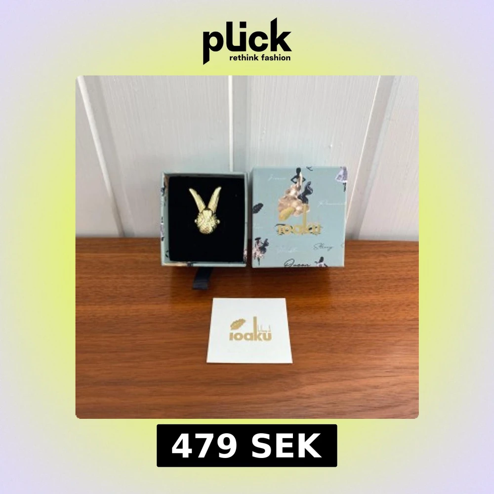 Jättefin ring från ioaku som föreställer en kanin. Den är guldfärgad och aldrig använd, helt ny endas testad. Därav har den inga anmärkningar eller defekter. Ringen är helt slutsåld på hemsidan och nypris är 599kr. Box medföljer. Hör av er vid frågor eller funderingar 💕