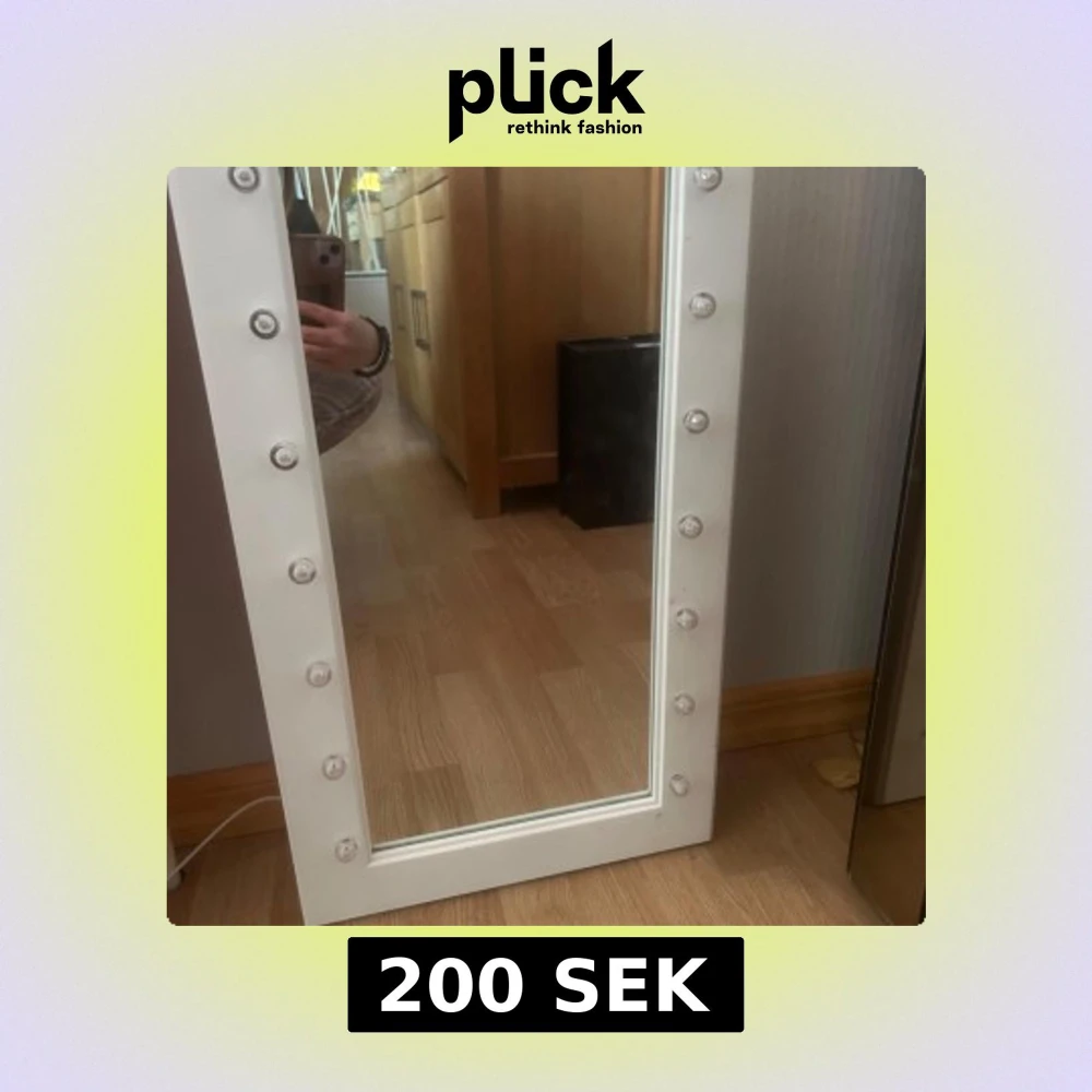 En spegel med lampor som går på batteri och förvaring inne i speglen, köpte för 500kr pris går att diskutera,minst 200. Inga problem med speglen