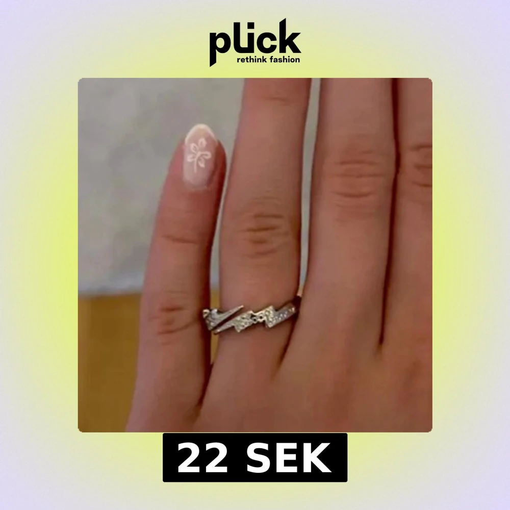 Säljer en stilren silverring med små gnistrande stenar i ett blixt mönster. Aldrig använd. Köpt på IrisJewerly och är justerbar. Fråga om du har funderingar ❤️