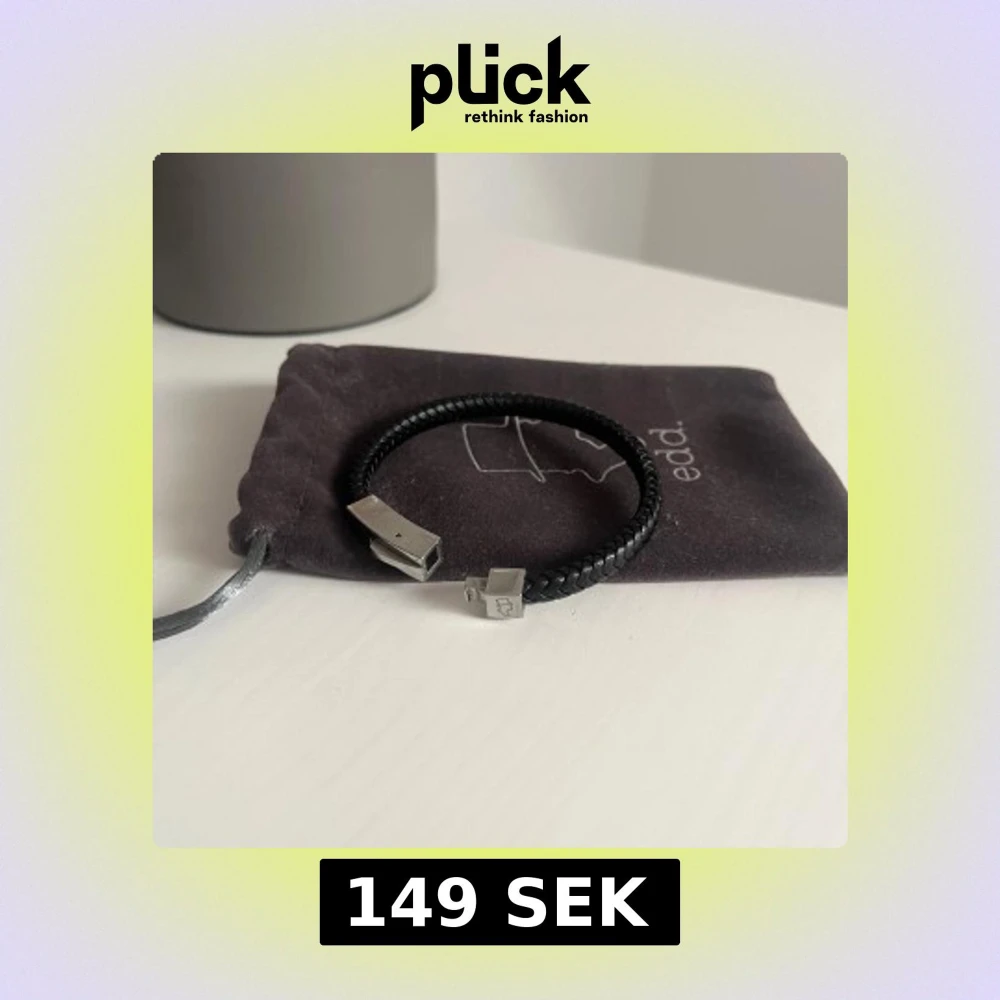 Stilrent svart armband från edd. Med flätad design i läder och ett coolt magnetlås i silverfärgad metall. Perfekt accessoar för att lyfta din outfit med en modern touch. Levereras i originalpåse med logga. Originalpris=400kr