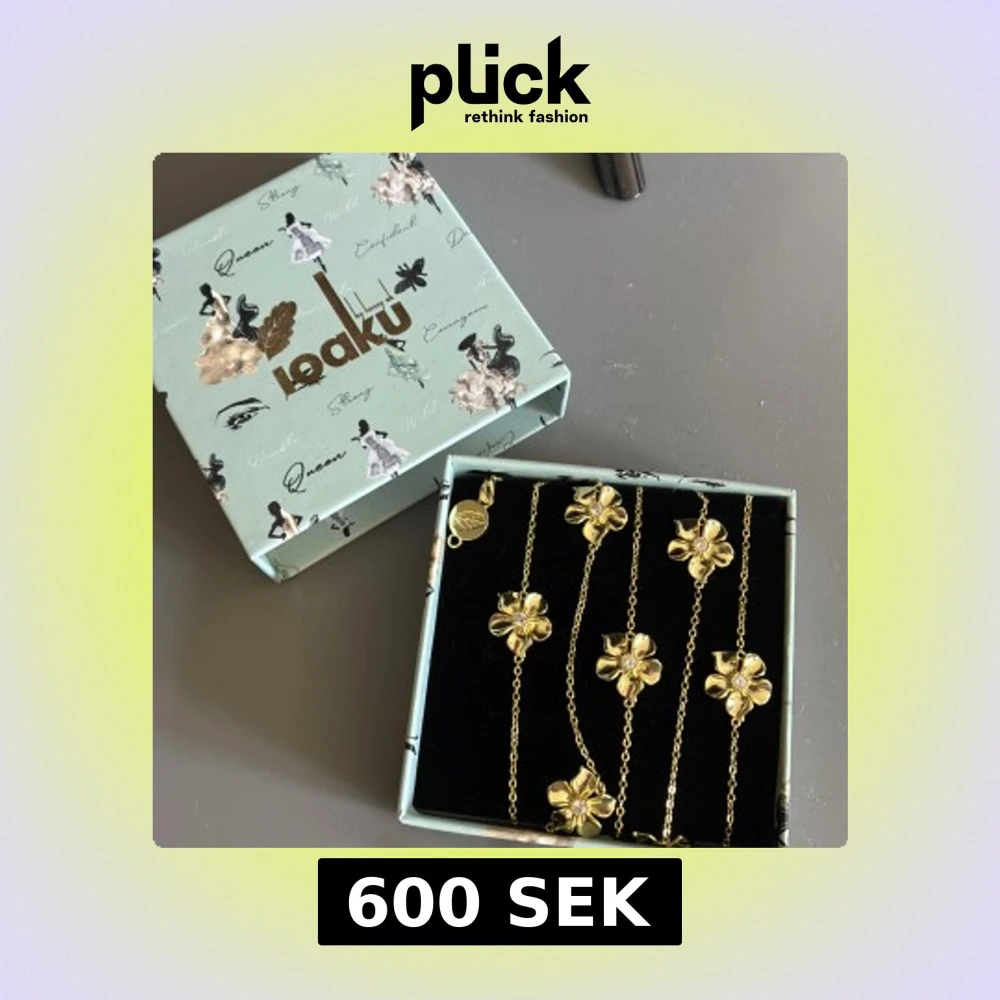 Supersnyggt och trendigt halsband från Ioaku med flera blommor i guld. Halsbandet har tyvärr inte kommit till användning. Passar så bra inför skolstarten om man vill ha ett mer unikt halsband för att lyfta upp en tråkig outfit eller hur man nu vill styla halsbandet. Smycket skickas i Ioaku asken. Original pris 799kr (slutsåld), pris kan diskuteras och skriv om ni har frågor💗
