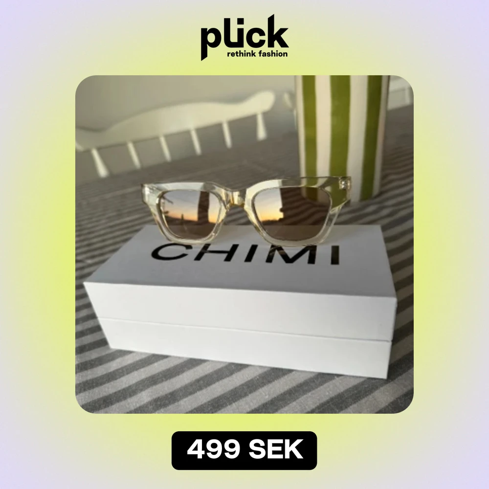 Chimi solglasögon Modell 11 Färg: Light yellow, liknar ecru. I nyskick bara testade hemma. Kartongen och duken fås med men inte fodralet.
