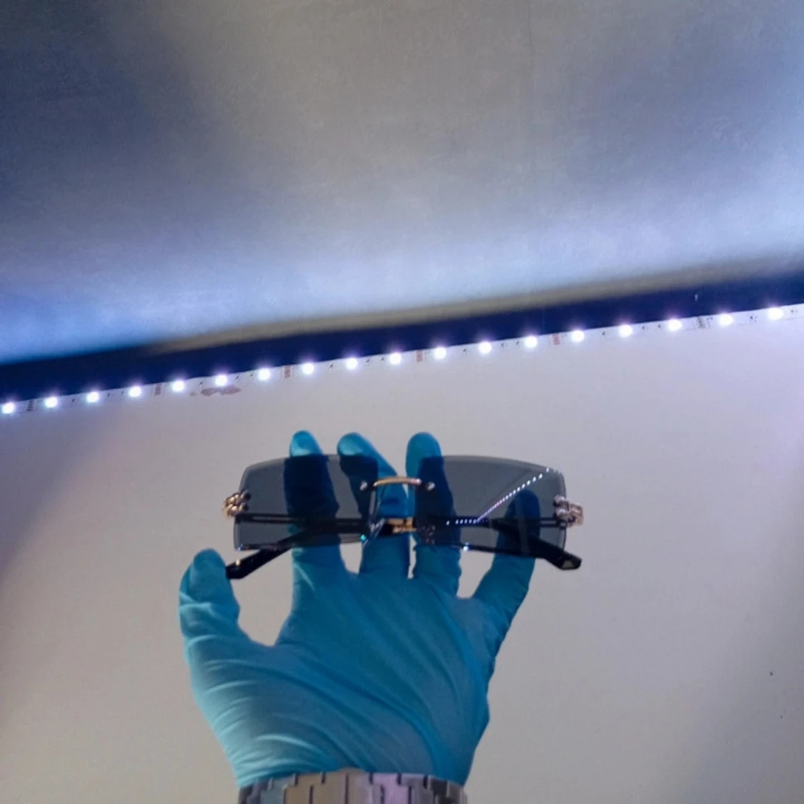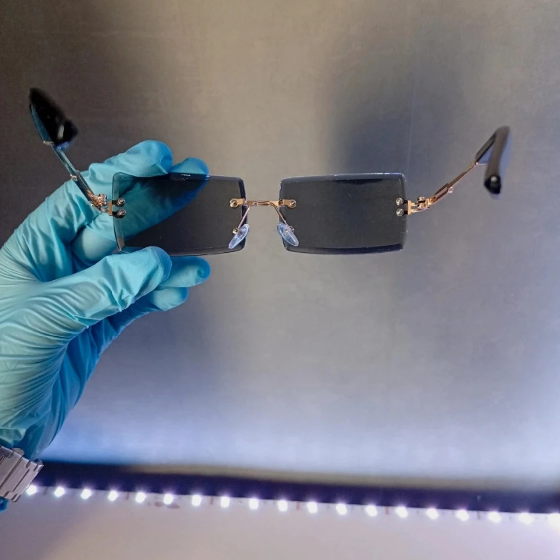 Rektangulära solglasögon 🕶️ med svarta tonade linser och tunna guldfärgade skalmar. Tidlös design, stilren passform och exklusiv känsla perfekta året runt.