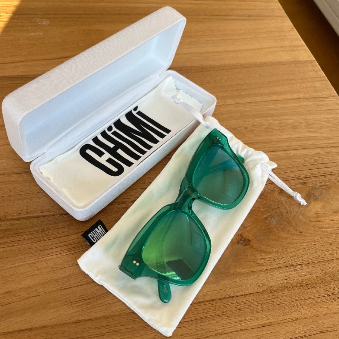 Solglasögon från chimi som inte går att köpa längre. Sparsamt använda🫶 Model #005 i färgen aqua💙 Hårt fodral, förvaringspåse och putsduk ingår (det som syns på bilden)