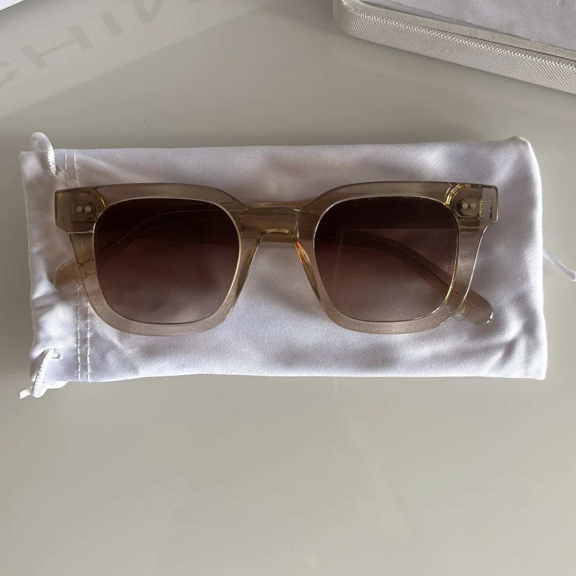 Chimi 04 ecru. Använda 1 sommar. Mycket bra skick. Endast banden till påsen som är sönder. Skriv vid frågor:)