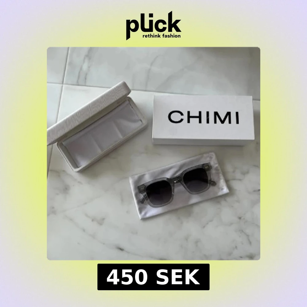 Snygga solglasögon från CHIMI i transparent grå färg med fyrkantig form. Bågarna är i plast och har diskret CHIMI-logga på sidan. Kommer med originalfodral och box. Perfekta för dig som vill ha en clean och modern look.