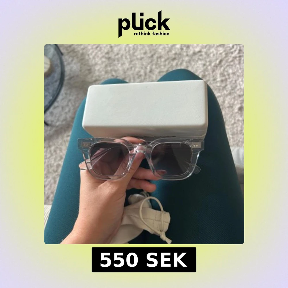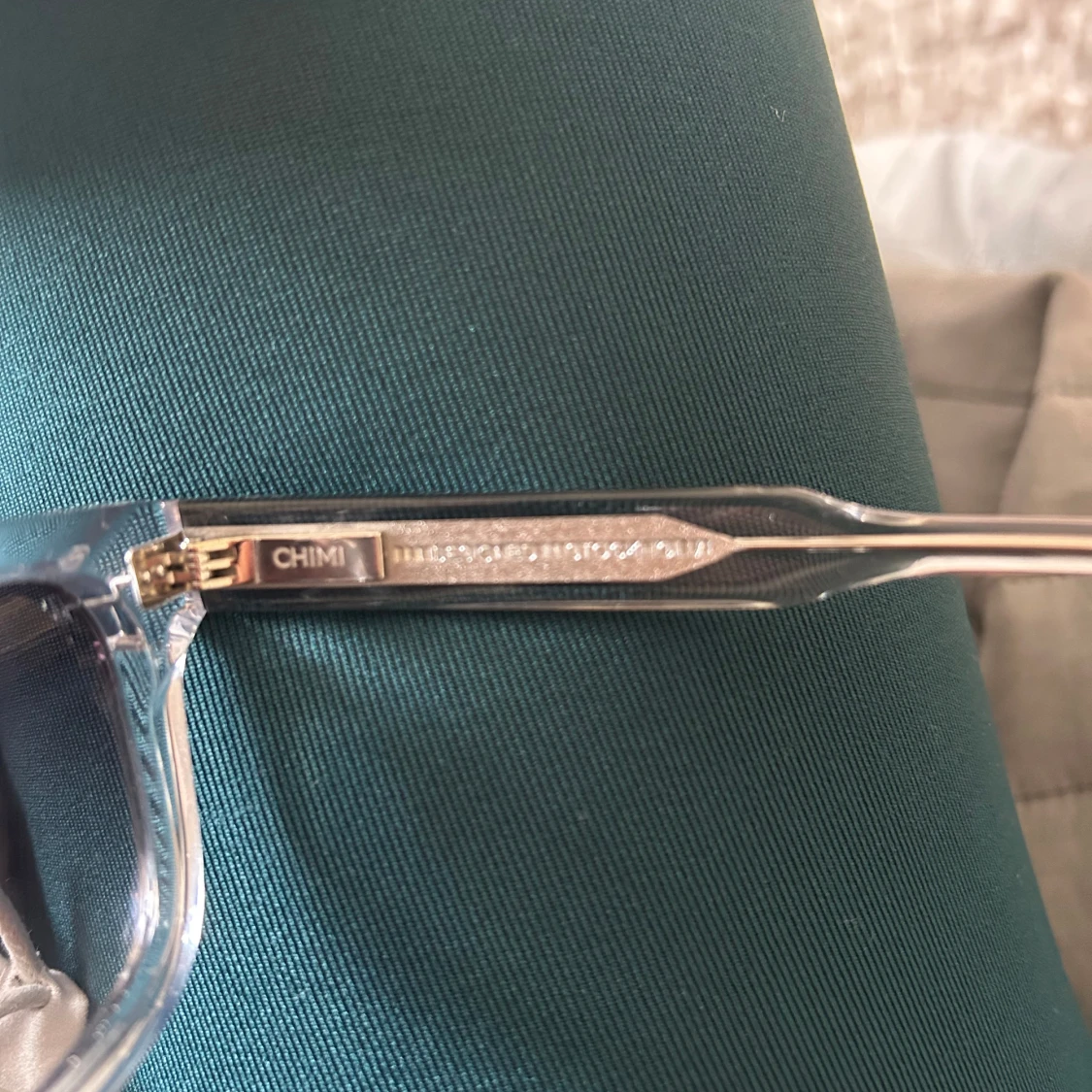 Snygga solglasögon från CHIMI med transparent, fyrkantig båge i plast och mörka linser. Perfekt accessoar för att lyfta din stil. Kommer med originalfodral och påse. Storleken är Medium.