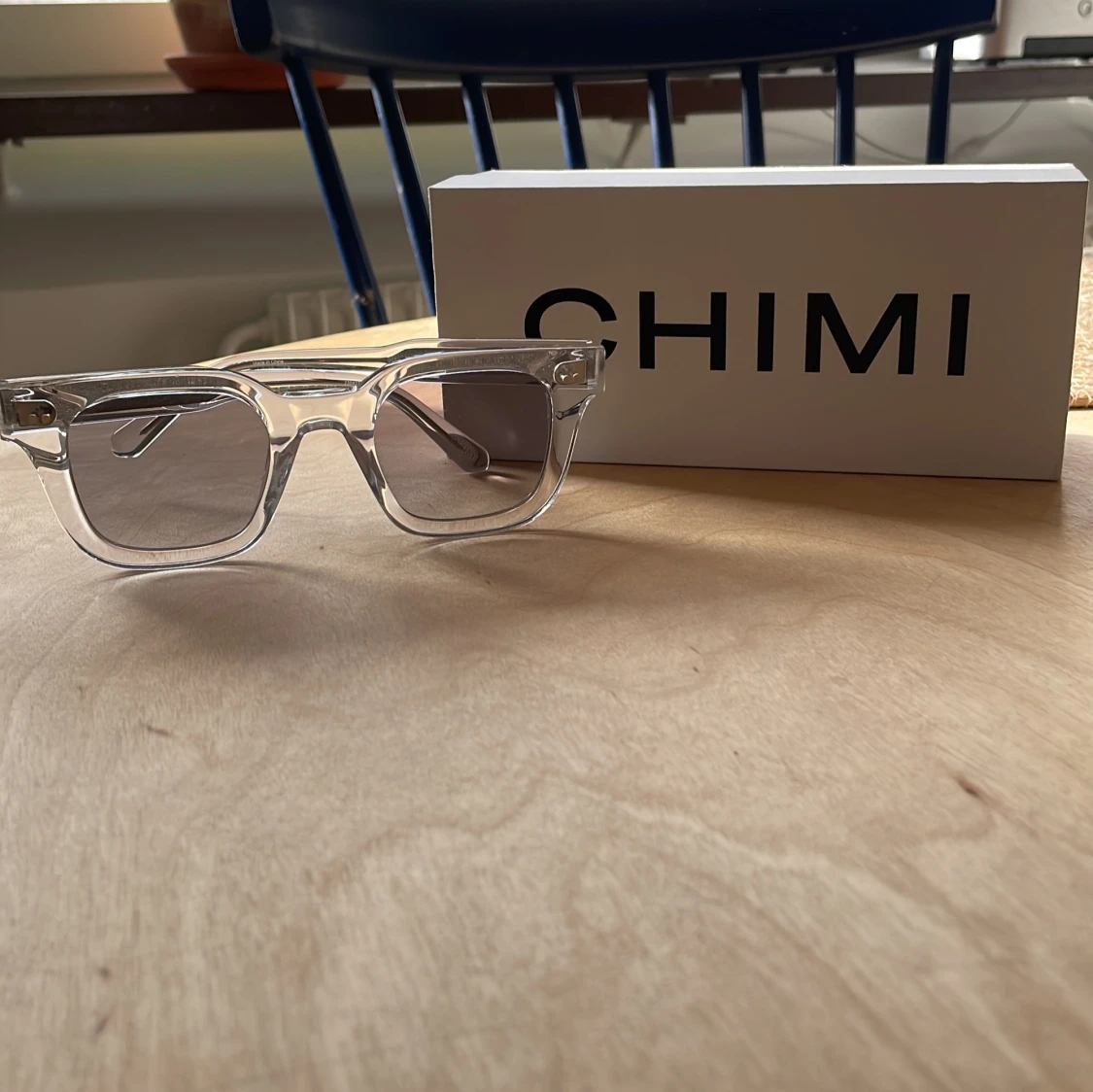 Snygga glasögon från CHIMI i 04 Clear. De har en rektangulär form och kommer med ett matchande fodral. Perfekta för en modern look.😊
