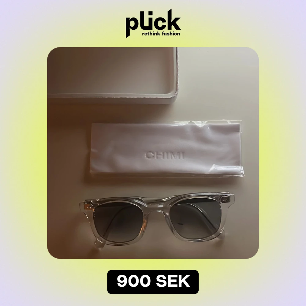Säljer ett par snygga transparenta solglasögon från Chimi. De har en modern design med mörka linser. Använda Max 1 gång och 10/10 con, tvättduken ligger fortfarande i plasten. Får med allt, orginal påse, orginal box, kvitto. Nypris: 1250