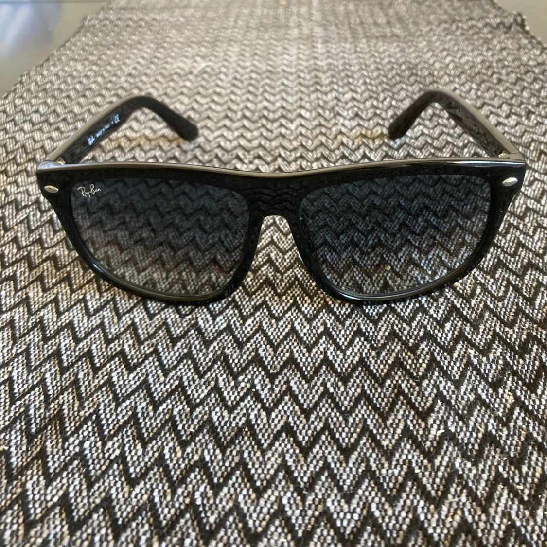 Snygga svarta Ray-Ban boyfriends RB4147 solglasögon med klassisk fyrkantig form och diskret logga på bågen. Tillverkade i Italien med robust plastmaterial och mörka glas med gradahl, Perfekta för dig som vill ha en stilren och tidlös look. Oandvända