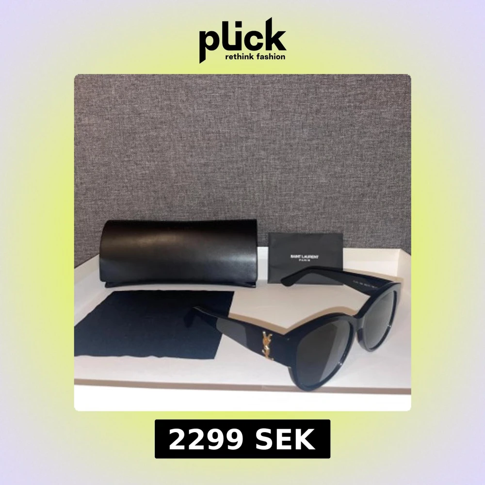 Snygga svarta solglasögon från Saint Laurent med klassisk cat eye-form och guldigt YSL-logo på skalmen. Tillverkade i Italien och levereras med originalfodral och putsduk. Perfekt accessoar för en trendig look. Priset kan även diskuteras vid snabb affär.