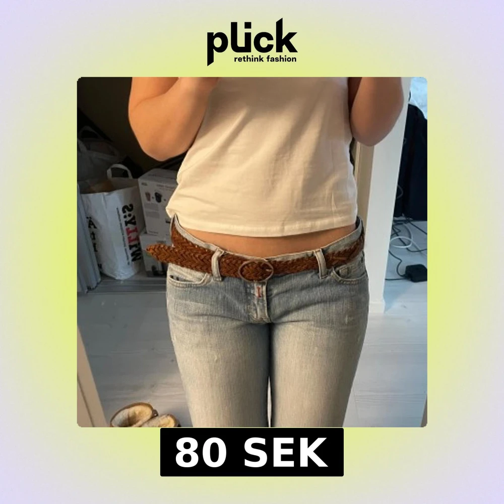 Säljer ett snyggt brunt flätat bälte med rund spänne. Passar bra till jeans och andra byxor. Jag har vanligtvis W.28/29. Går att använda om man har större eller mindre då man kan knäppa den vart som.