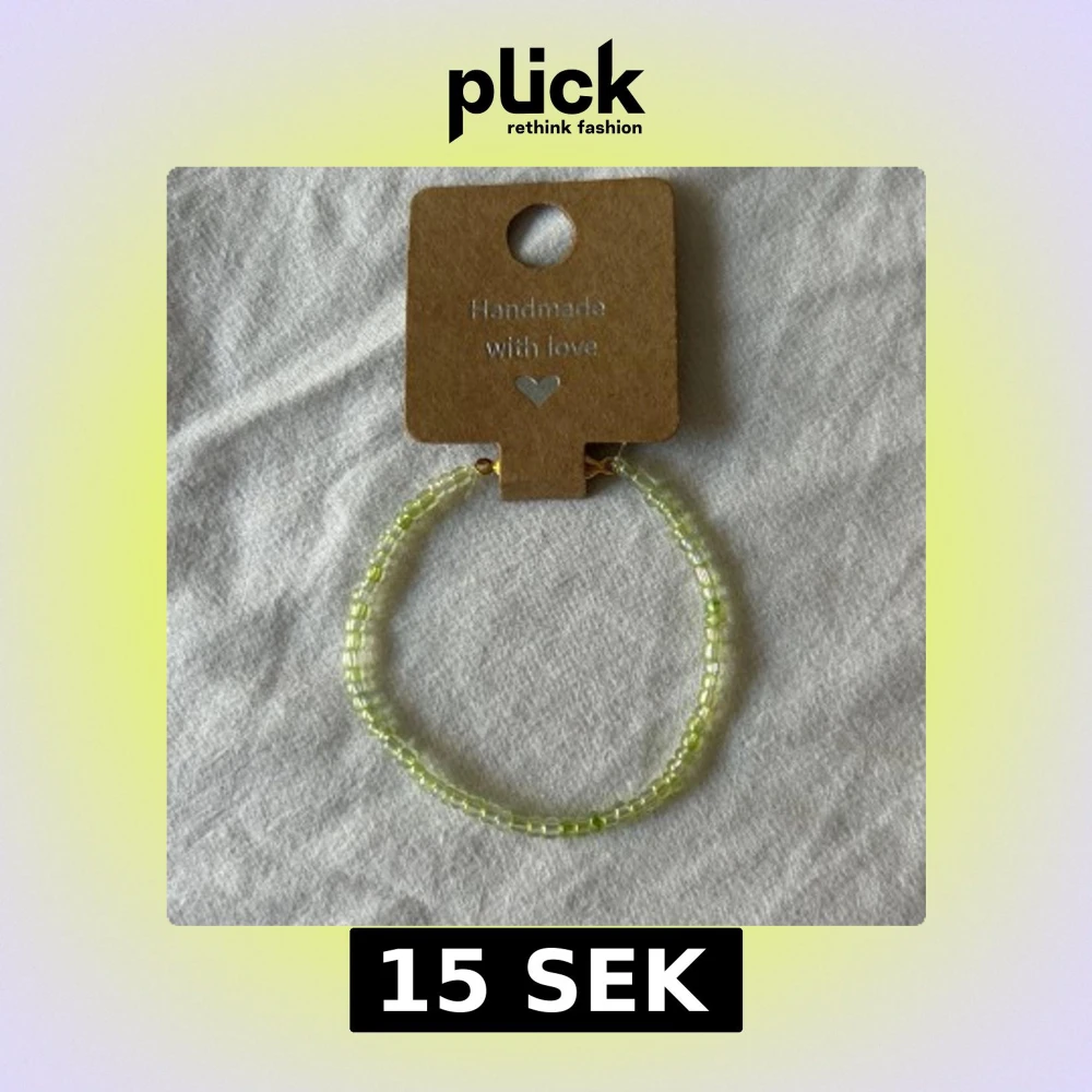 Säljer ett handgjort armband med små ljusgröna glaspärlor och guldfärgat lås. Perfekt accessoar för att addera lite färg till din stil. Enkel och stilren design som passar till många tillfällen.💗