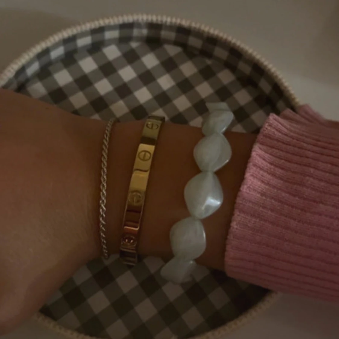Pärarmband, ljus ljus grön färg men mer åt det fita hållet, inga defekter, aldrig använd