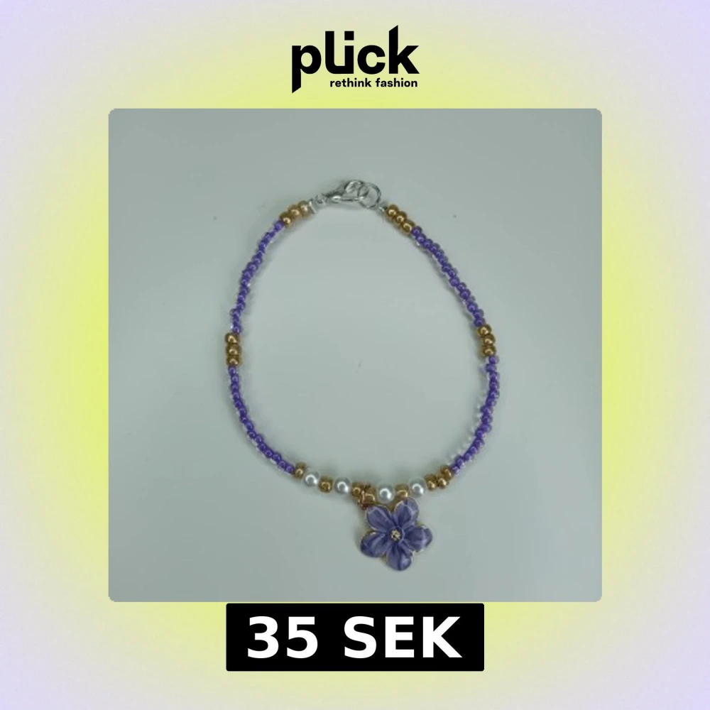 Armband skapat med pärlor i guld,lila samt vita pärlor. Längd ca 17,5cm lång