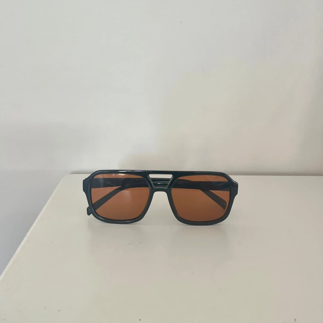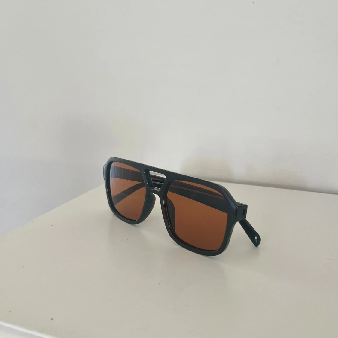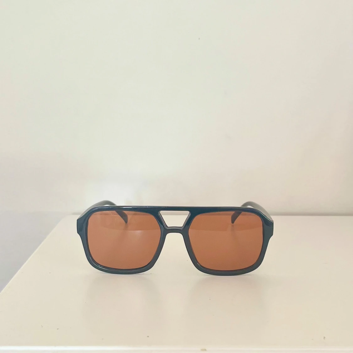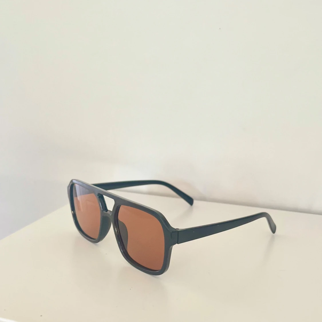 Snygga solglasögon med svart, kantig båge och bruna glas. Modellen har en modern, oversized känsla och passar perfekt för dig som vill sticka ut. Bågarna är i plast och har en cool retrovibe.