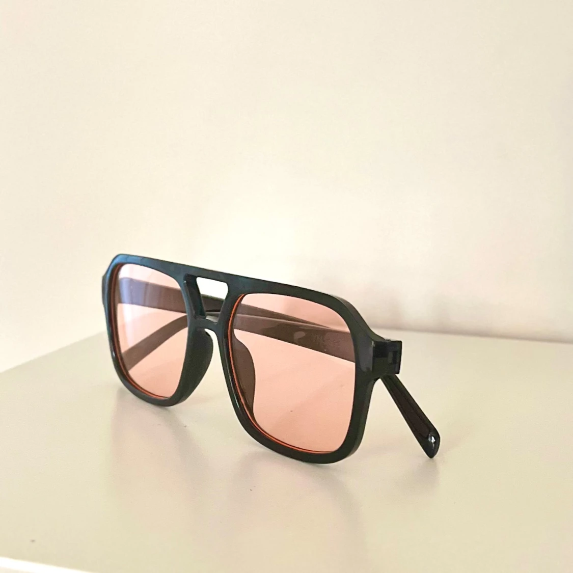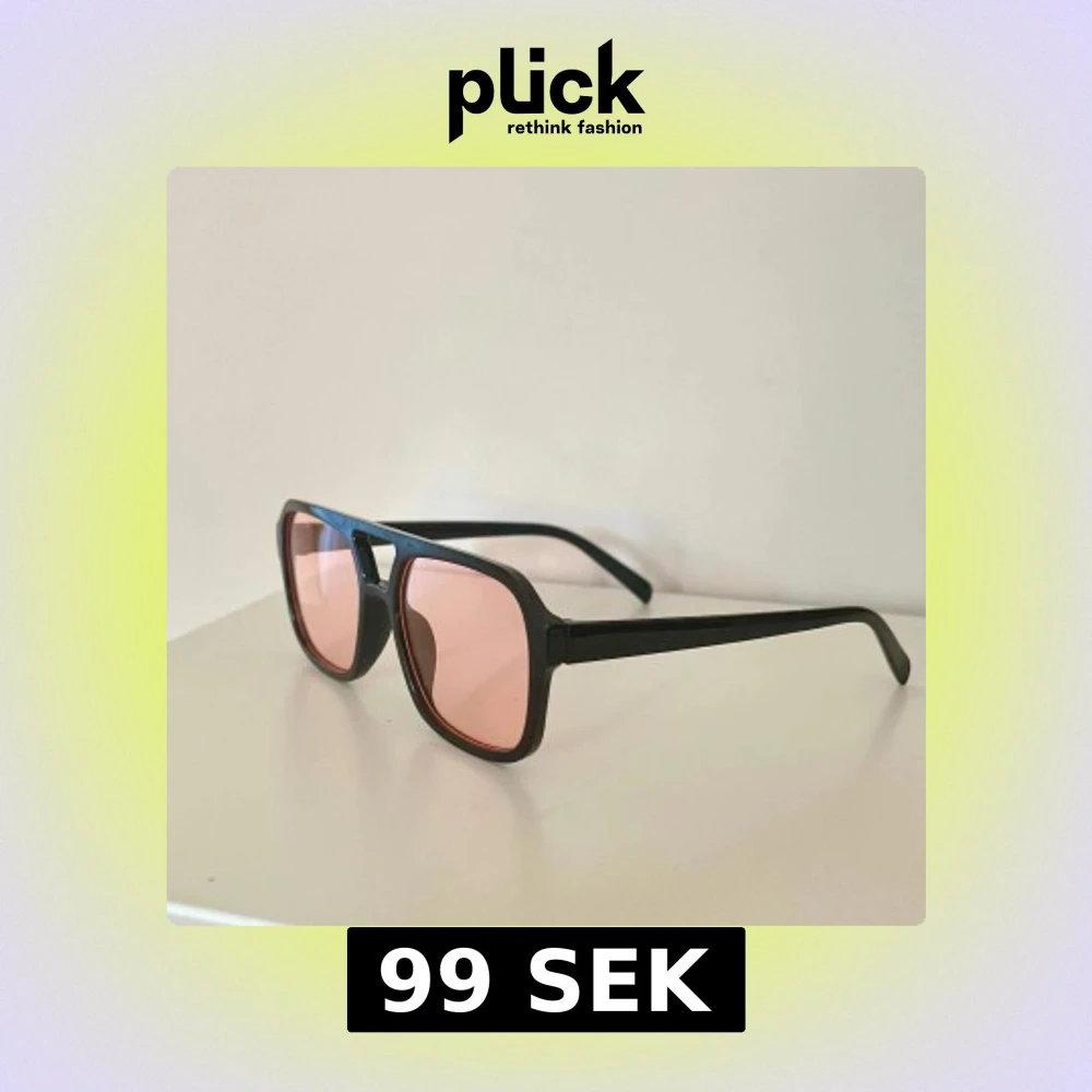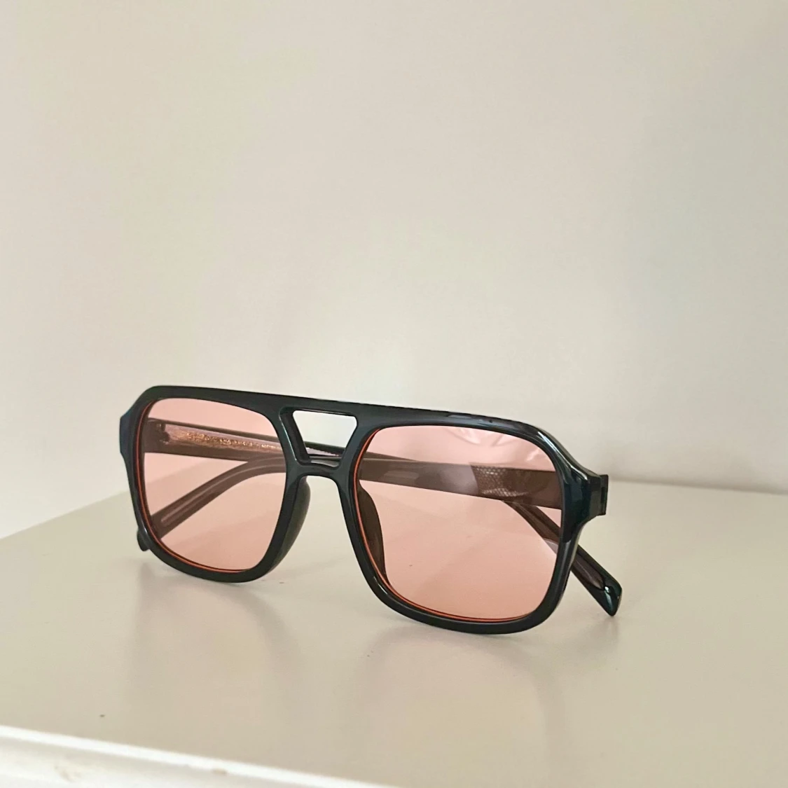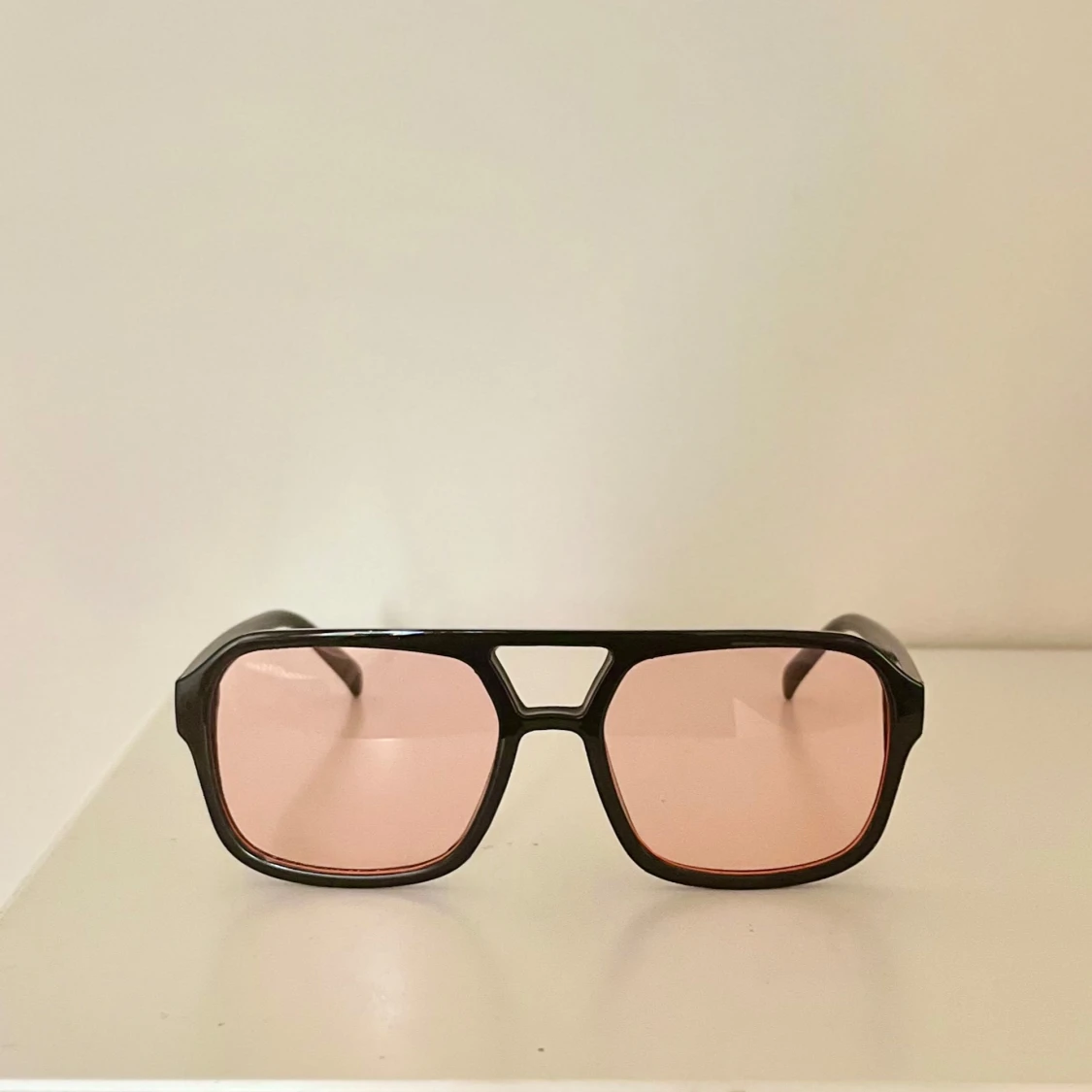 Snygga solglasögon med svart båge och rektangulär form🤵🏼Glasen är ljusrosa och ger en cool retrovibe. Perfekt accessoar för att lyfta din stil😎