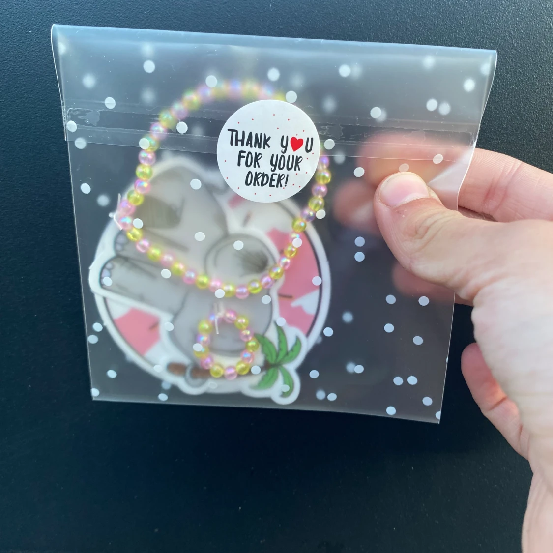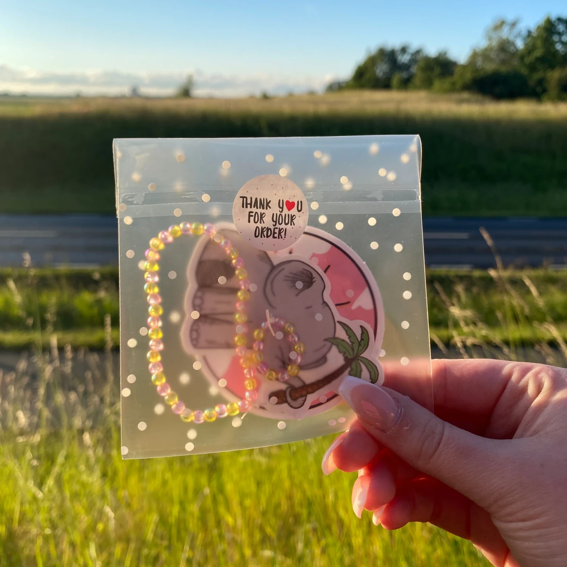 Vi sÀljer detta sommriga kit. Det innehÄller en ring och ett armband i fÀrgerna rosa och gul. Dem matchar Àven med varandra.