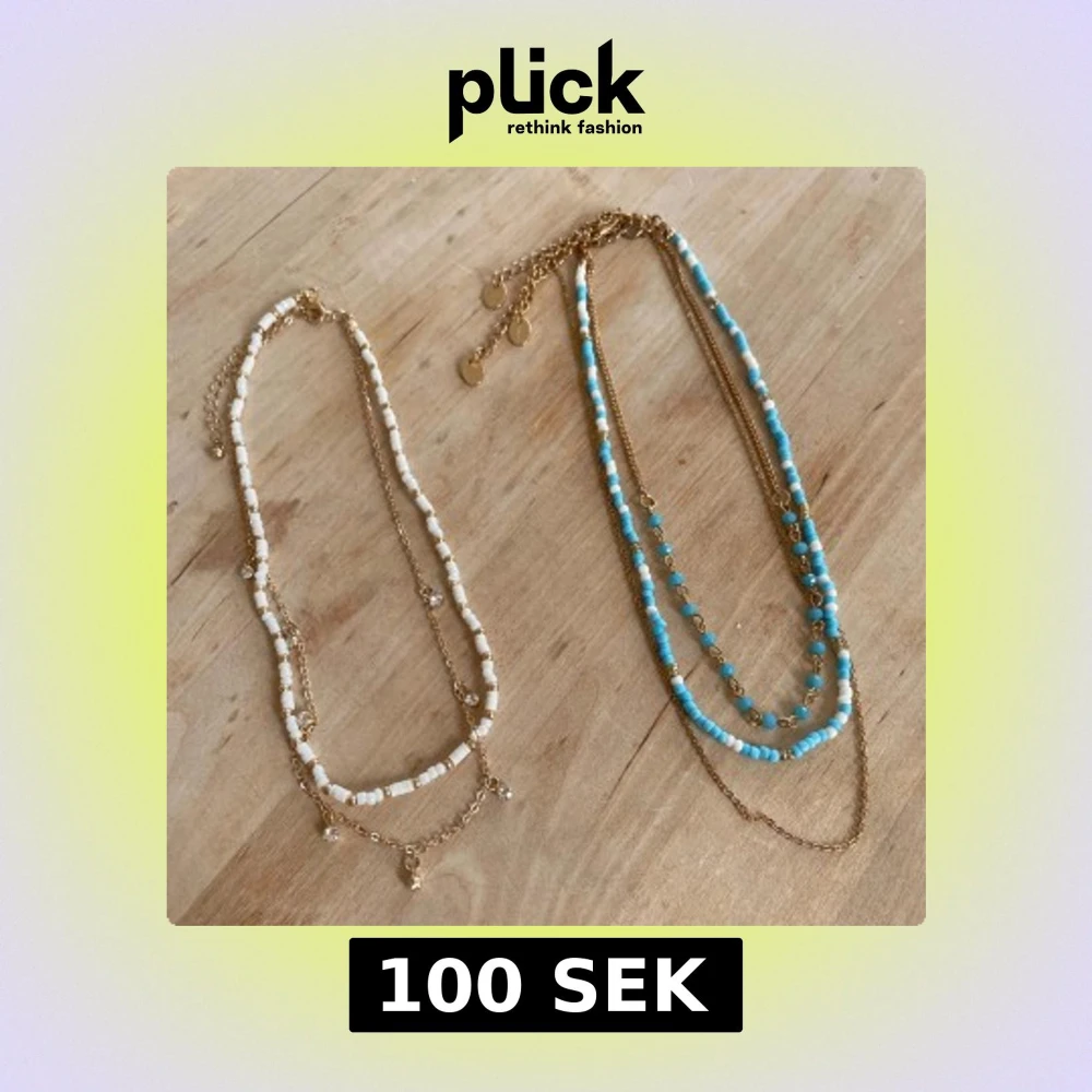 SĂ€ljer 2 set med halsbandđ Det ena har vita pĂ€rlor och det andra blĂ„ pĂ€rlor, bĂ„da med guldkedjor. Perfekt för att lĂ€gga till en fĂ€rgklick till din outfit nu till sommaren och vĂ„renđ«¶100 kr för bĂ„da parenâșïž