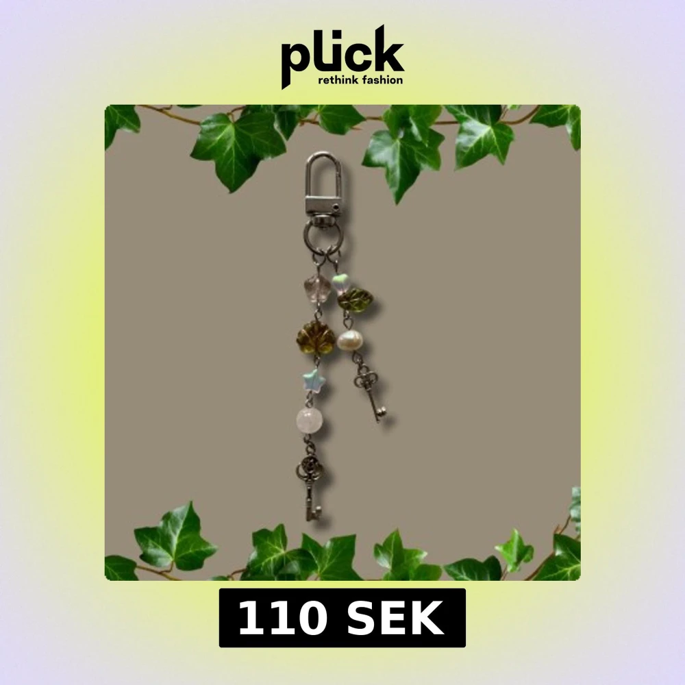 Keychain med rosenkvarts, tjeckiska glaspärlor, en upcycled sötvattenpärla & charms i form av nycklar. Går att sätta på väska exempelvis, väldigt Fairycore :)🌿✨