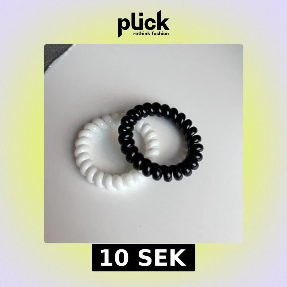 Två spiralformade hårsnoddar i svart och vit färg. Aldrig använda! 🩷 Önskar du veta exakta mått? Tveka inte att höra av dig!