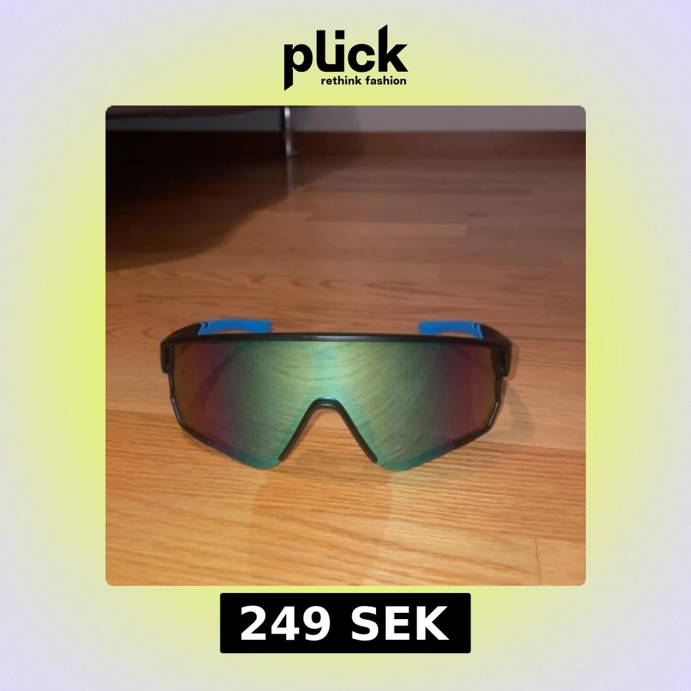 Snygga sportiga solglasögon från MaxAir med en spegelreflekterande lins i regnbågsfärger. Bågarna är svarta med blå detaljer på skalmarna. Perfekta för en aktiv livsstil och ger ett coolt intryck. Riktigt snygga