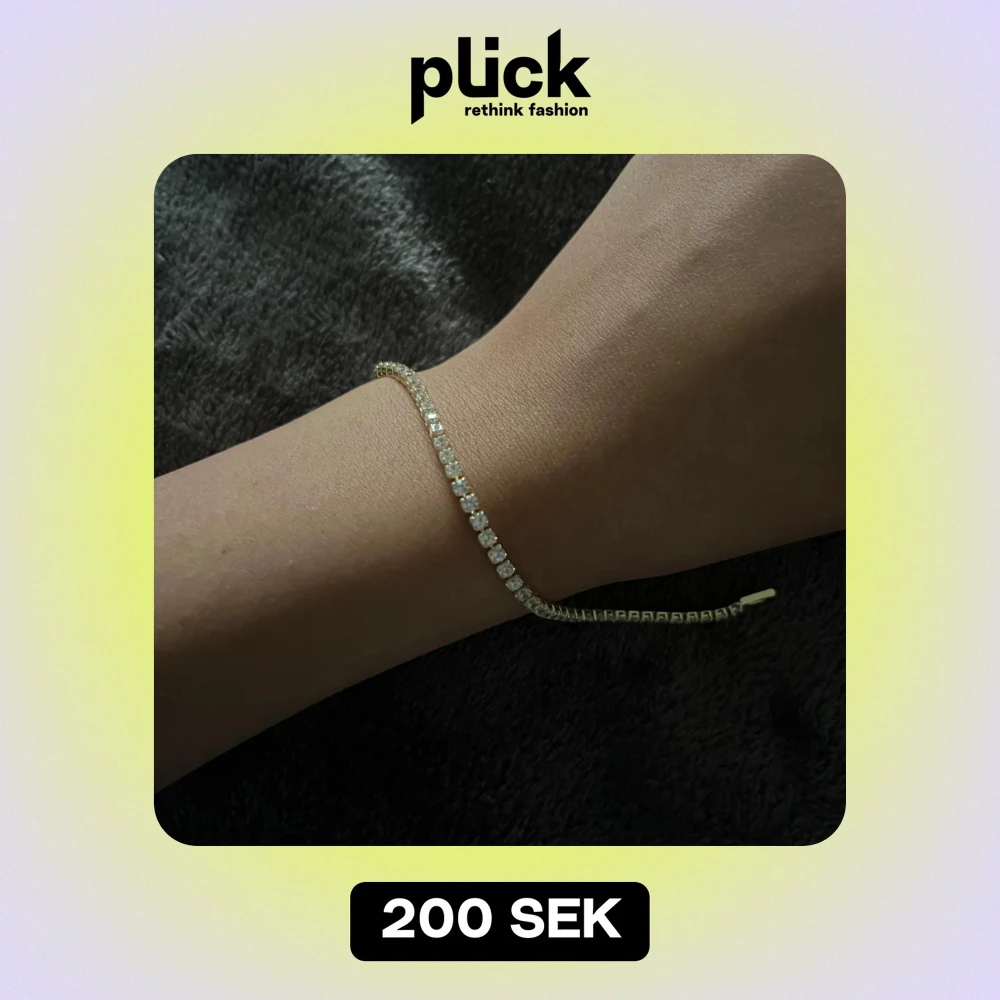 Säljer ett superchict guldarmband med gnistrande stenar. Det har en säker låsning så du kan bära det utan oro. Passar perfekt som en present eller för att skämma bort dig själv! ✨Passar både till tjejer och killar. Oanvänd och ny. I stål så färgen ändras inte. Storlek 19 så den hänger lite