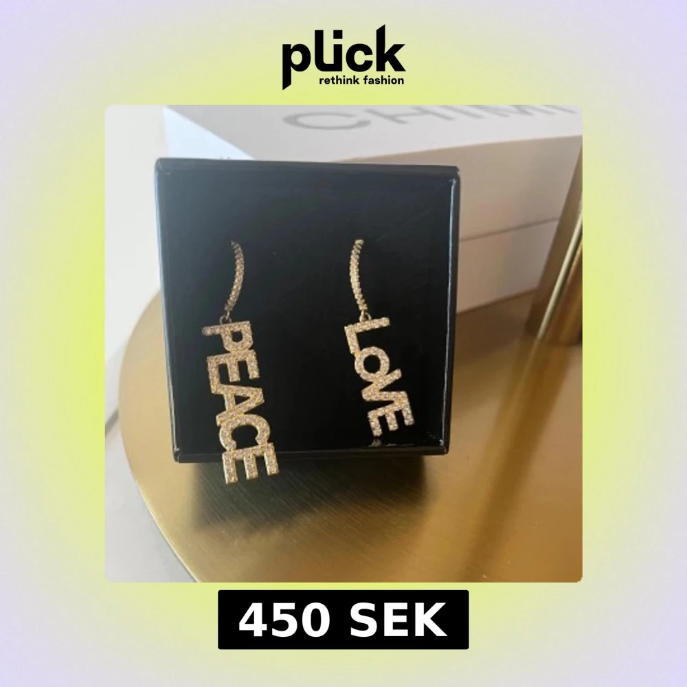 Snygga statement hoop örhängen med orden 'PEACE' och 'LOVE' i glittriga bokstäver. Perfekta för att ge en extra touch till din outfit.